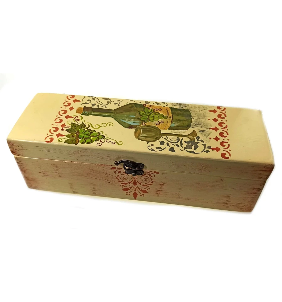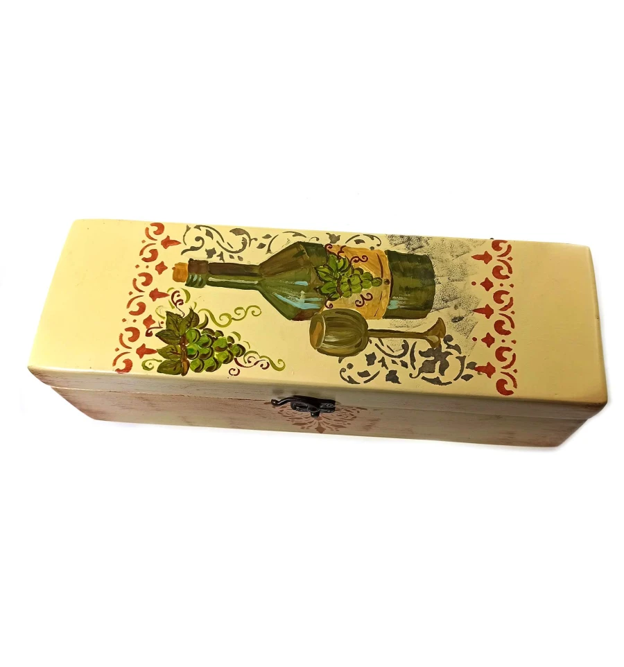 Футляр для пляшок з барменським ножем «Пляшка Вина» (масив дерева розписаний вручну 36×11.5×11.5 см)