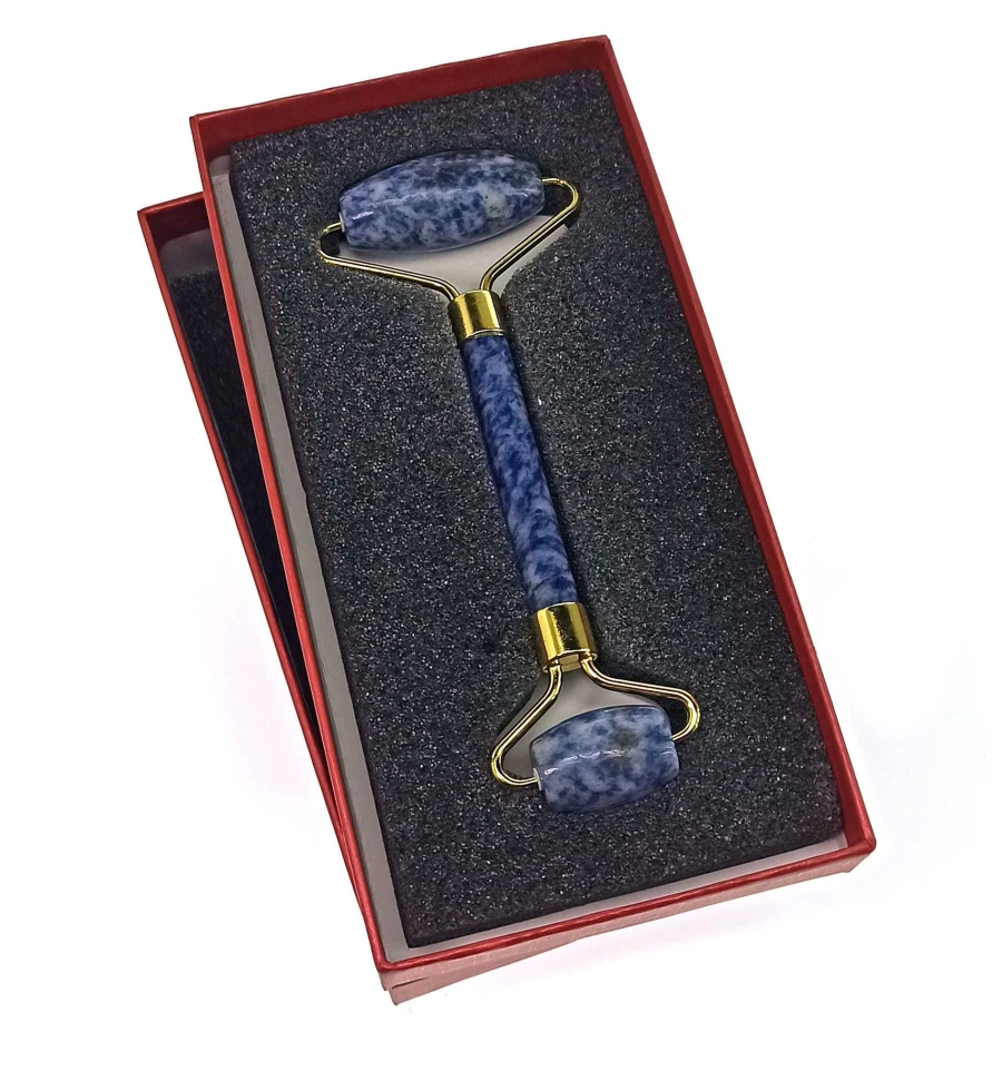 Масаж для обличчя з лазуриту двосторонній - це інструмент для масажу обличчя, виготовлений з натурального лазуриту. Він має дві різні поверхні – одна з невеликими опуклими точками, а інша – з плоскою поверхнею. Масажер допомагає покращити кровообіг та стимулювати регенерацію шкіри, а також може допомогти знизити набряклість та зменшити видимість зморшок. Розмір масажера складає 14,5 х6х2 см.