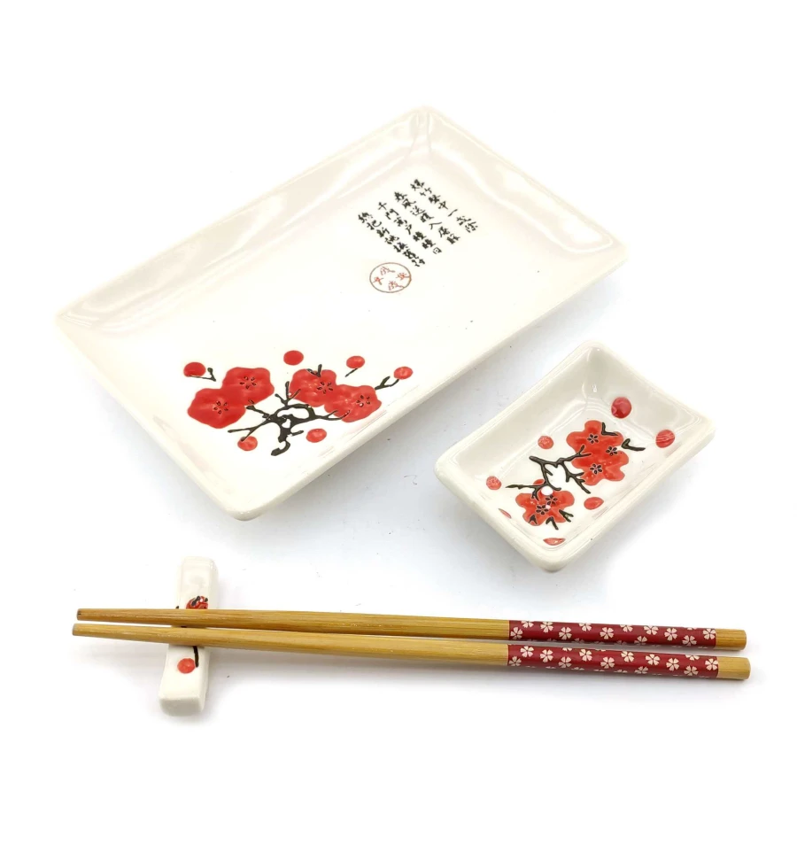 Сервіз для суші «Червона сакура на білому тлі» (28×14 см) (1 особа)