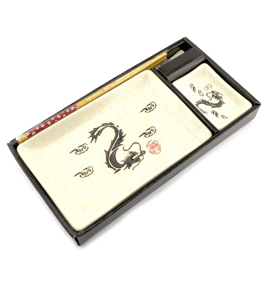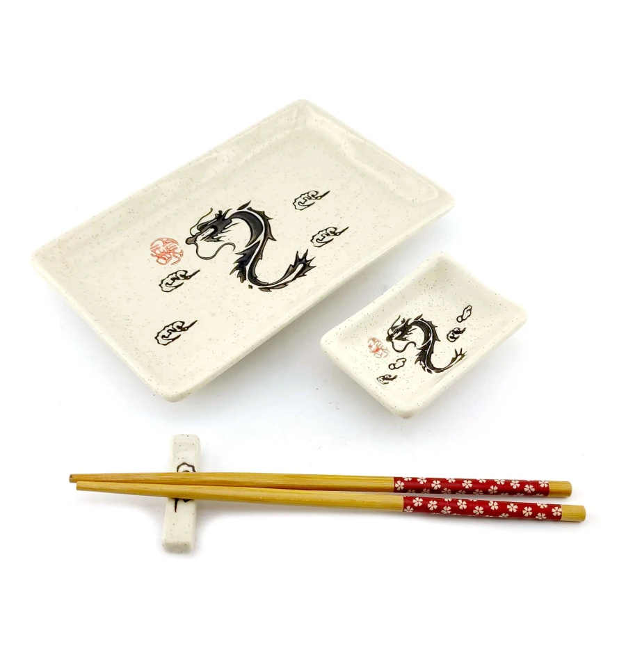 Сервіз для суші «Дракони на білому тлі» (28×14 см) (1 особа)
