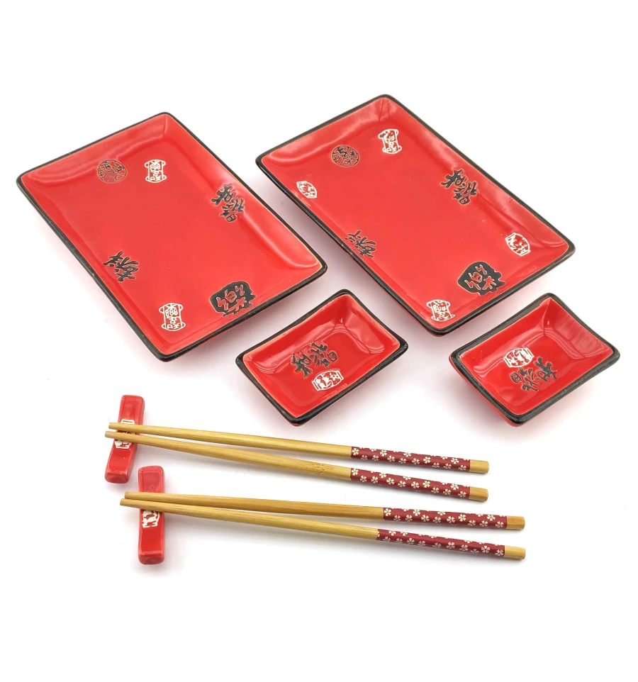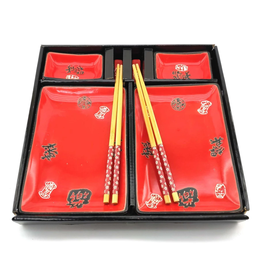Сервіз для суші «Ієрогліфи на червоному тлі» (2 персони) (28×28.3×3.5 см)