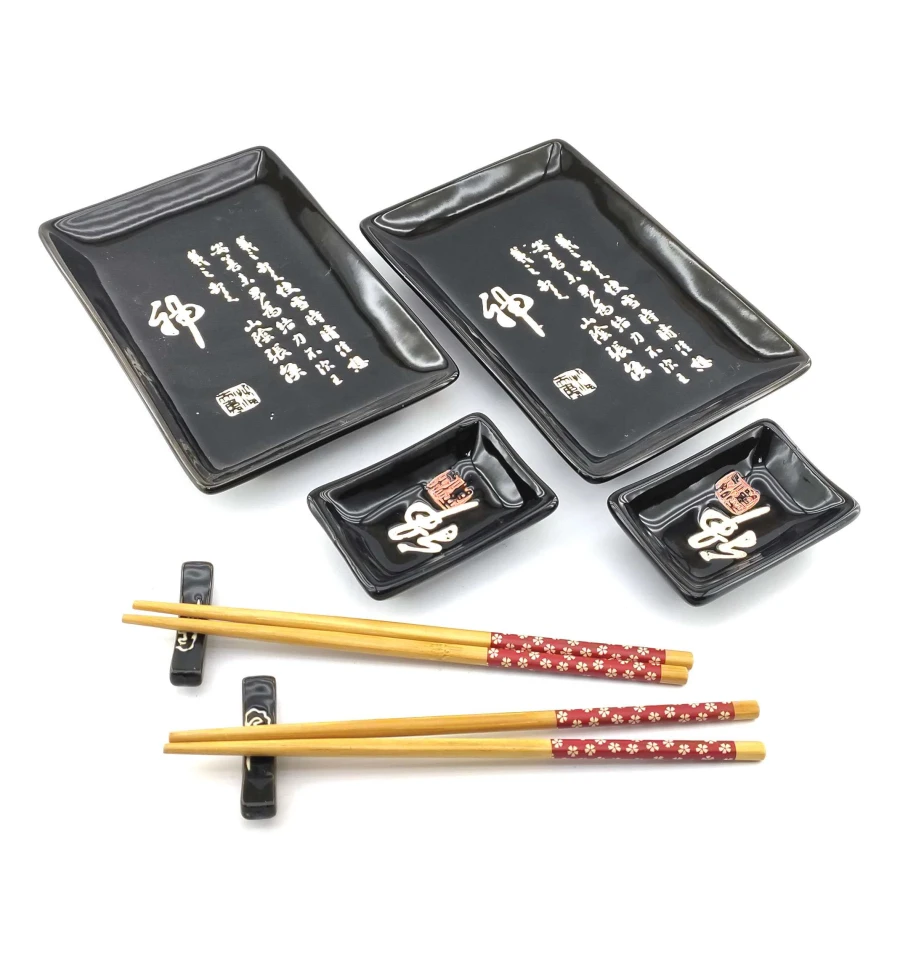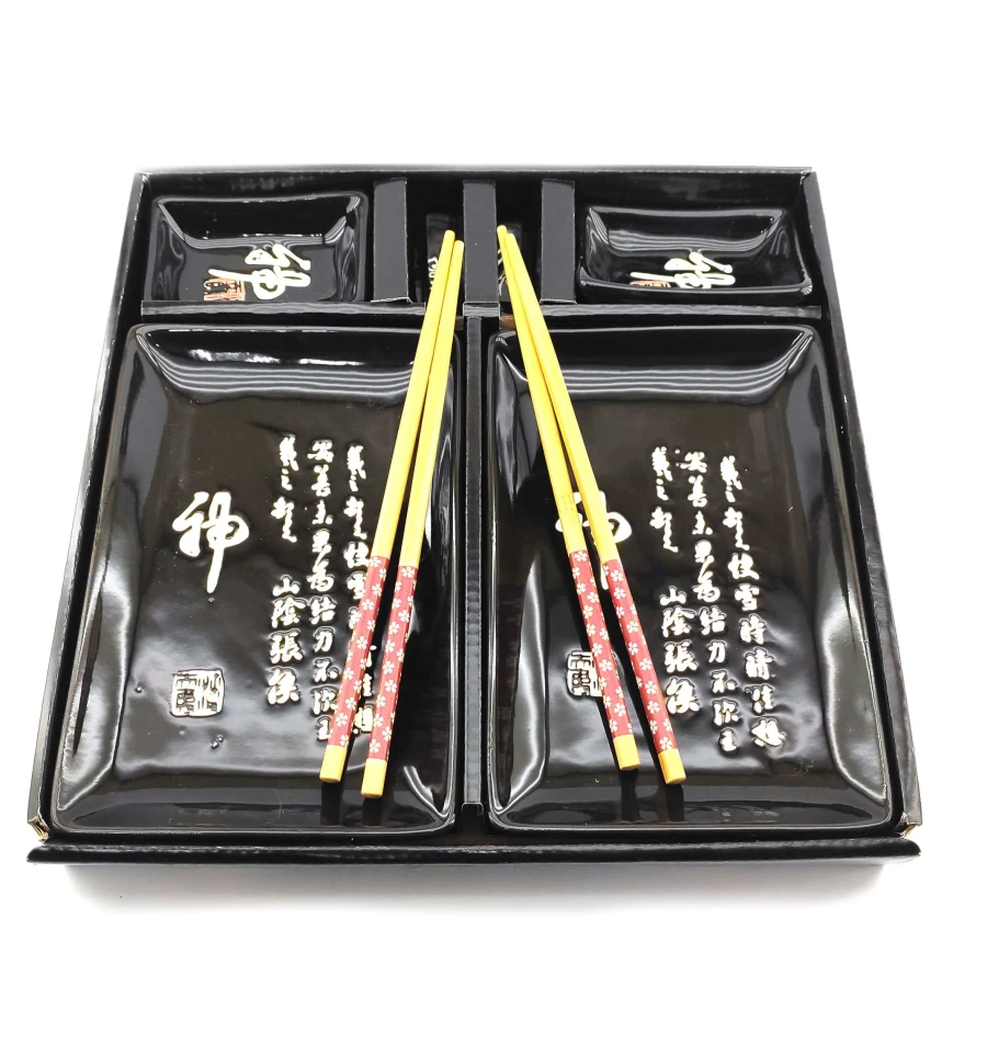 Сервіз для суші «Ієрогліфи на чорному тлі» (2 персони) (28×28.3×3.5 см)