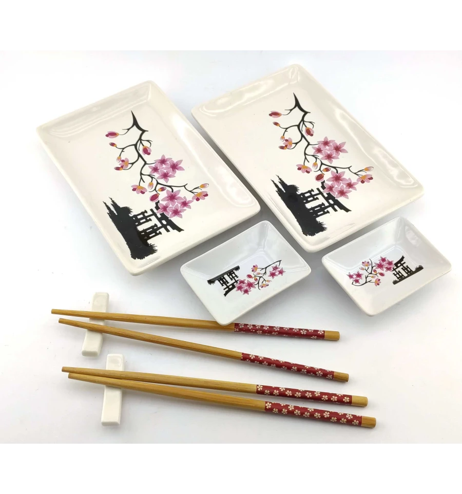 Сервіз для суші «Сакура на білому тлі» (2 персони) (28×28.3×3.5 см) U