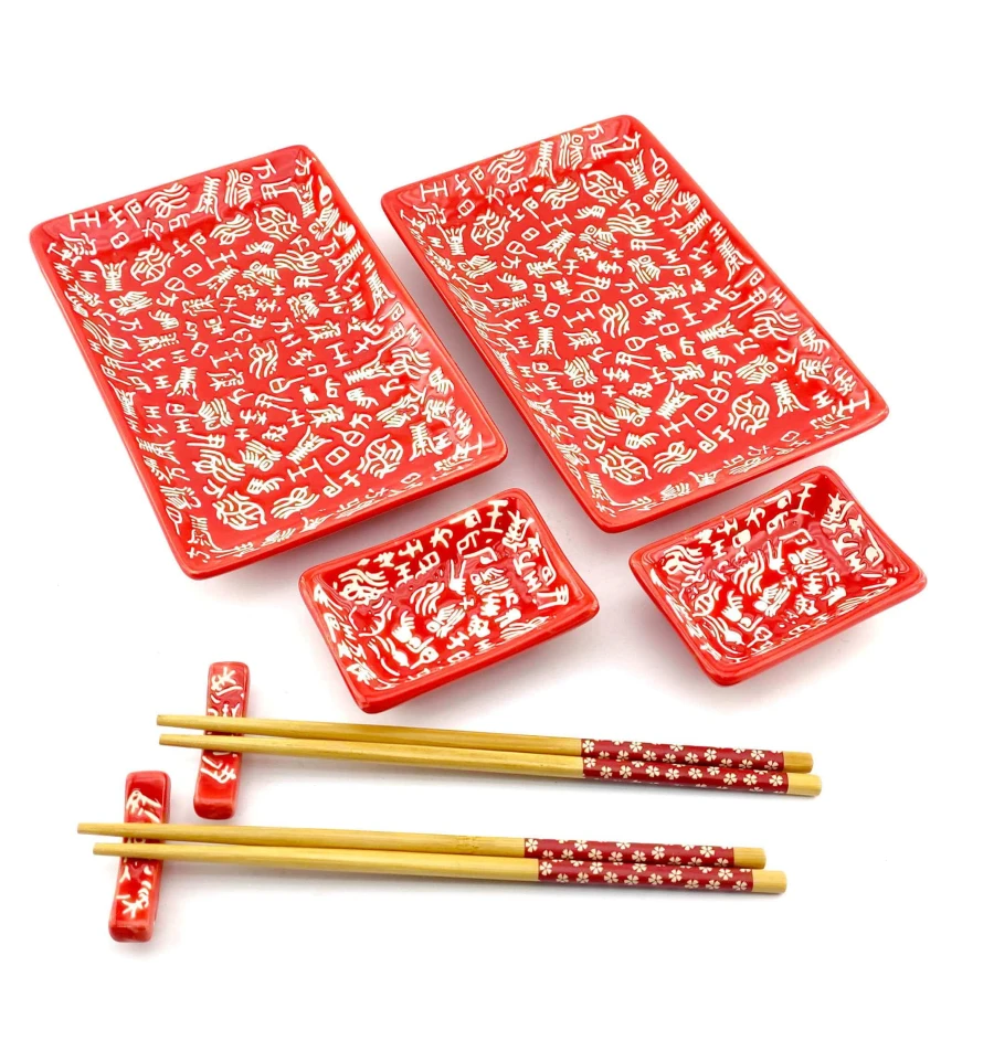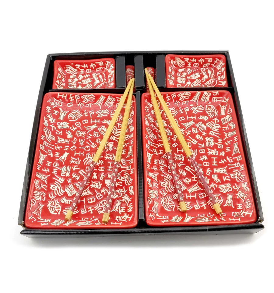 Сервіз для суші «Ієрогліфи на червоному тлі» (2 персони) (28×28.3×3.5 см) J