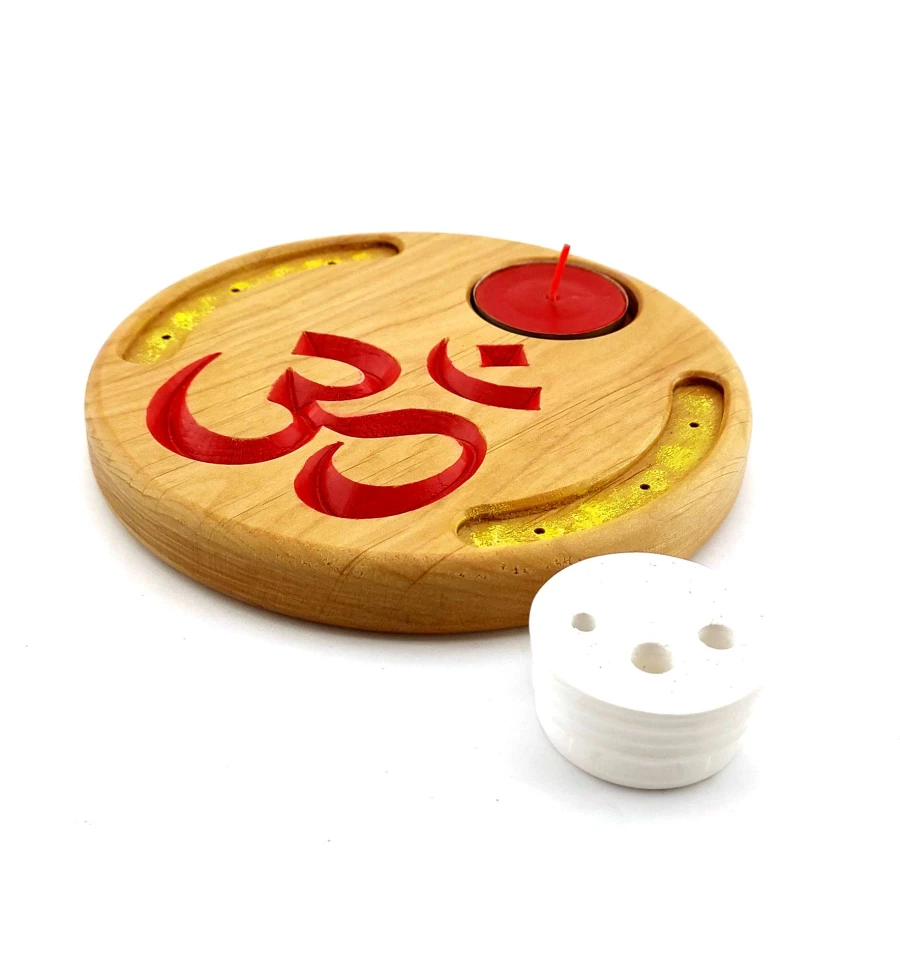 Підставка має можливість встановлення одночасно 6 пахощів з бамбуковою паличкою, чайної свічки та комплектується підставкою під основні види безосновних пахощів та конуси.
