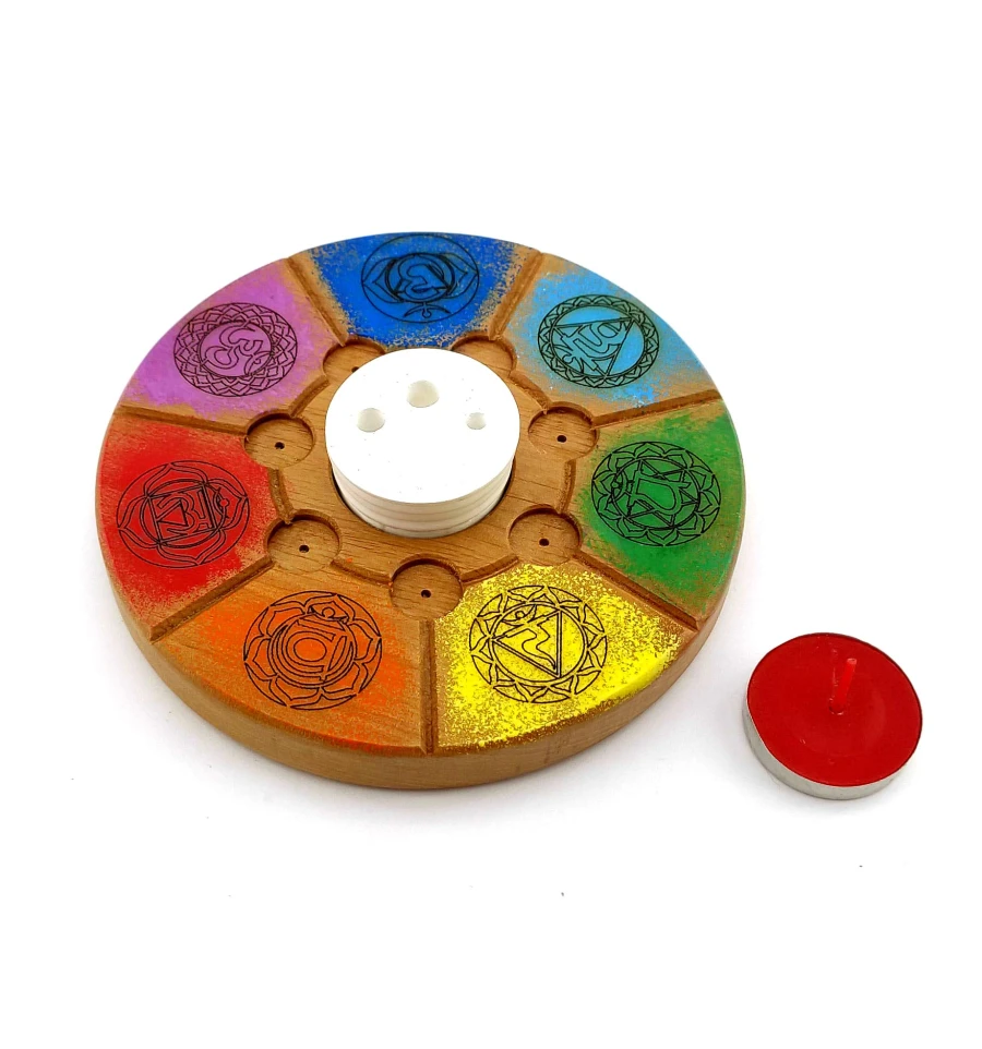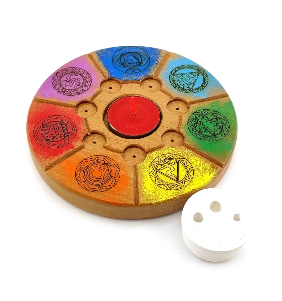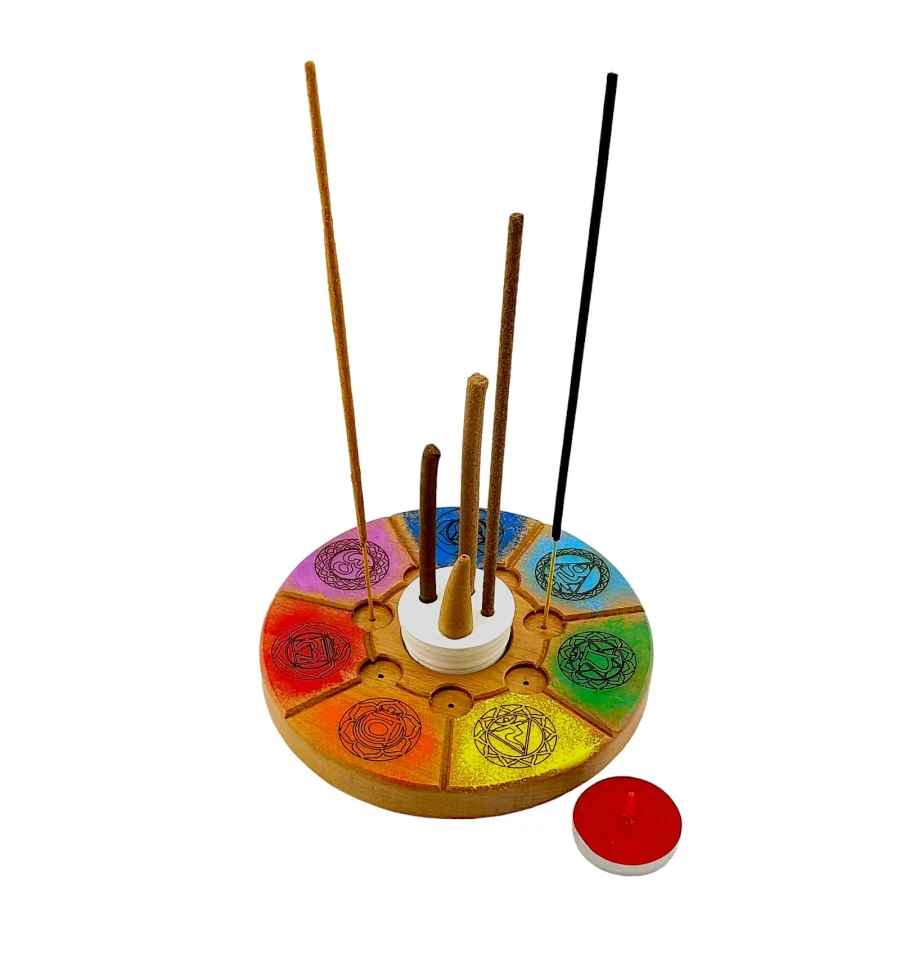 Підставка під пахощі «7 чакр», (d14 смh1.8 см) дерево, різьблена покрита емаллю та лаком