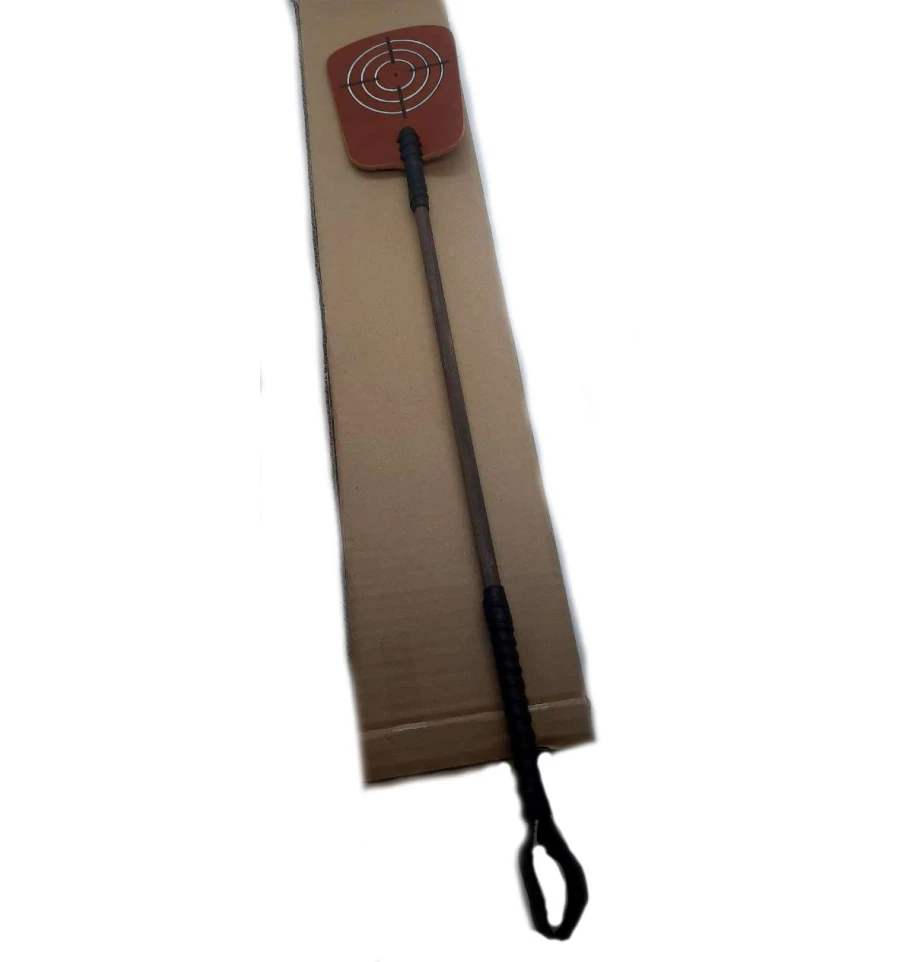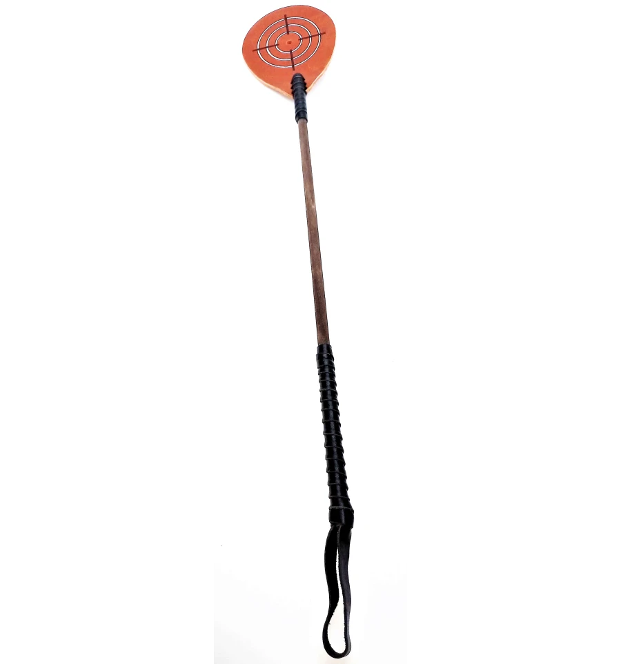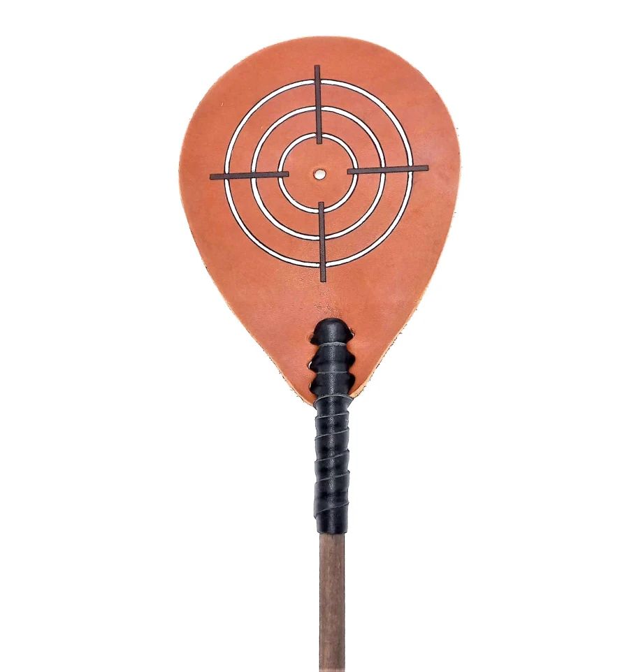 Мухобійка кругла з прицілом (61×12×2 см), натуральна шкіра, натуральне дерево, ручна робота