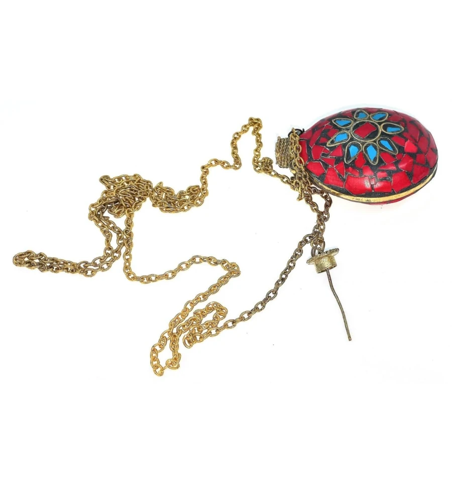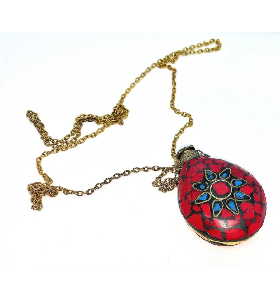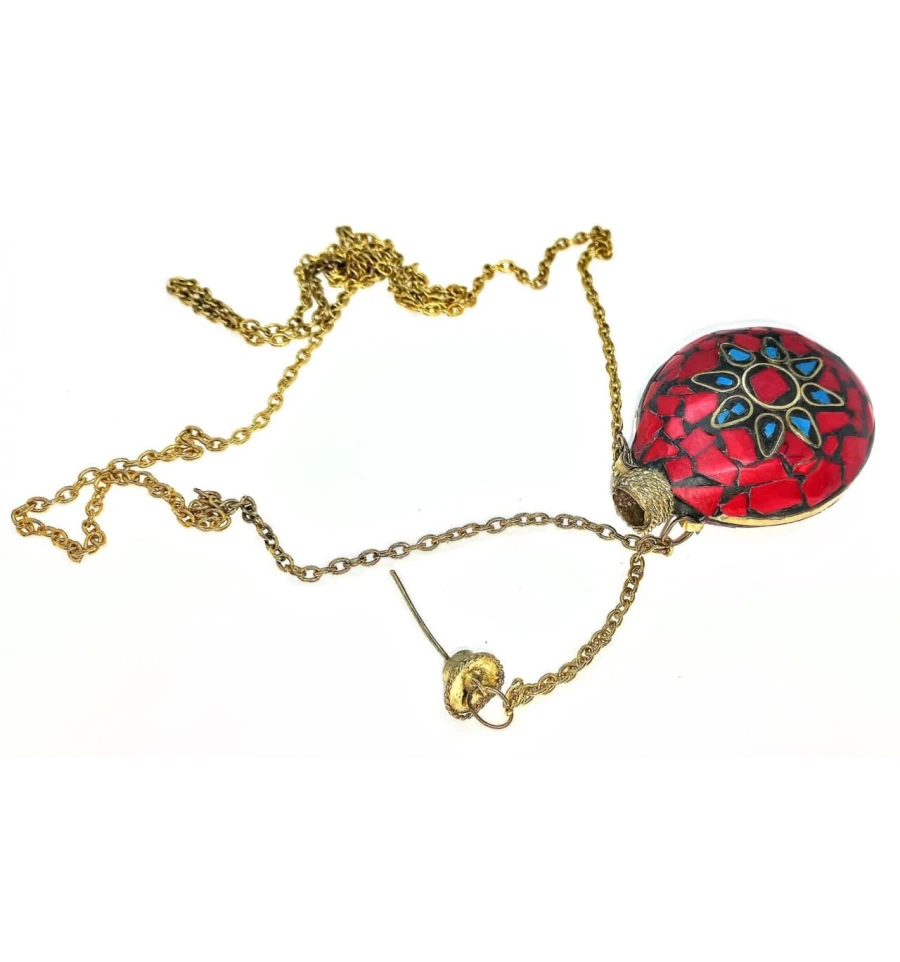 Аромакулон «Сонце» бронзовий інкрустований бірюзою та коралами (5.5×4.5×2 см)