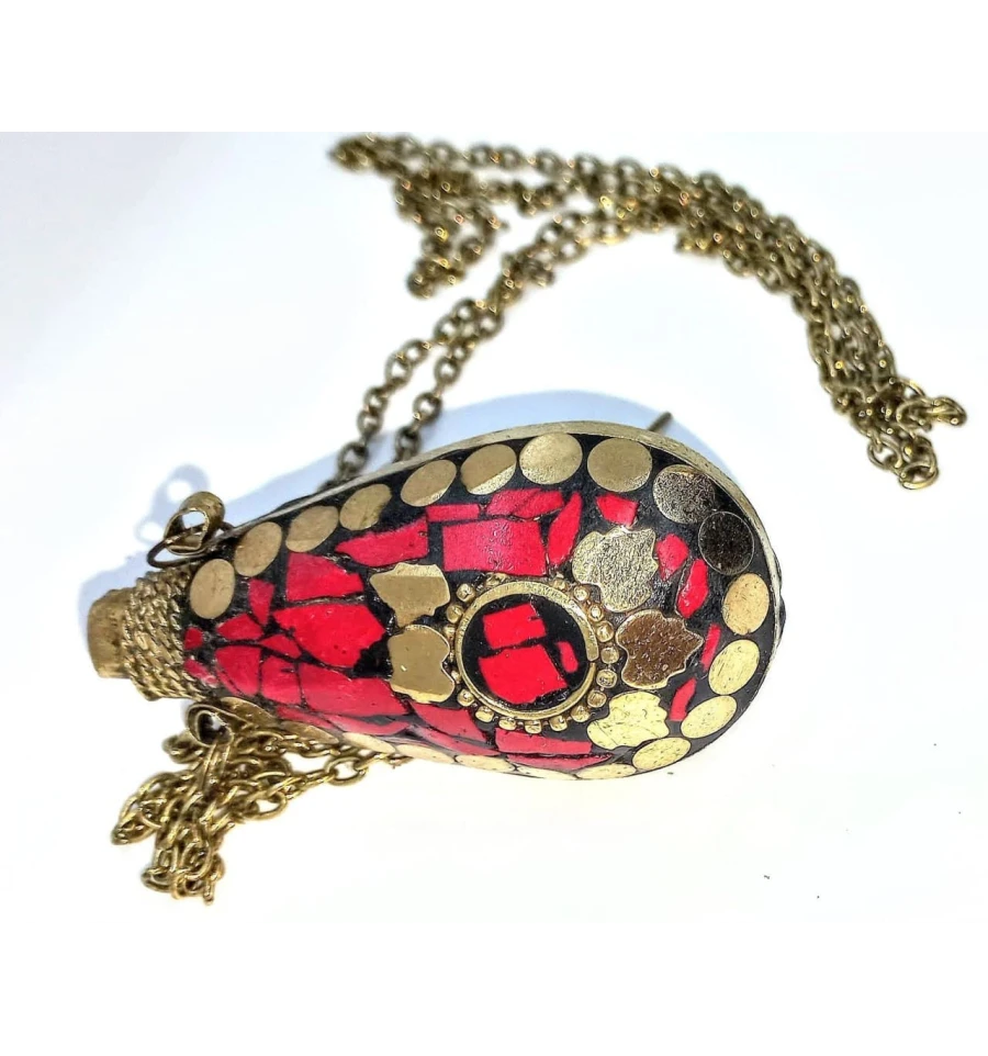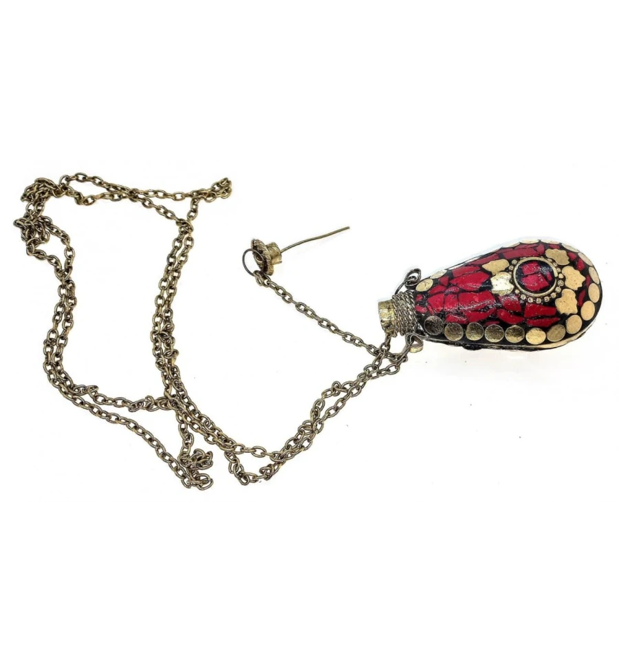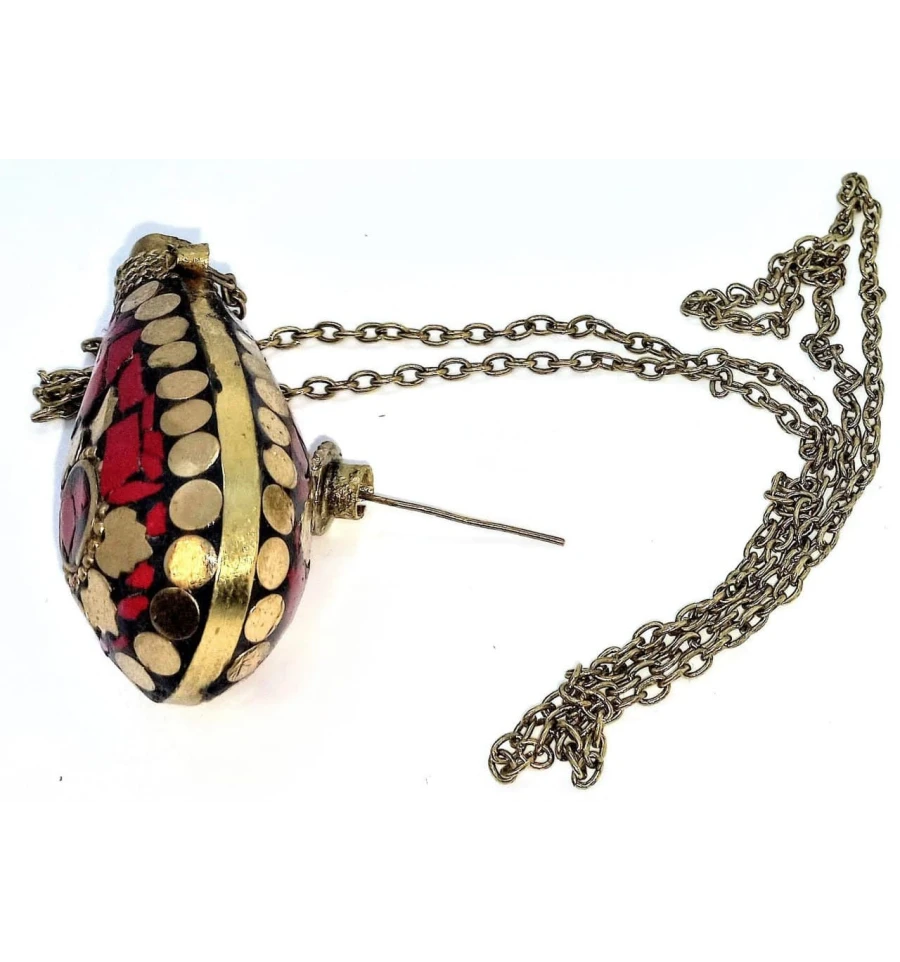 Аромакулон бронзовий інкрустований латунню та коралами (5.5×4.5×2 см)