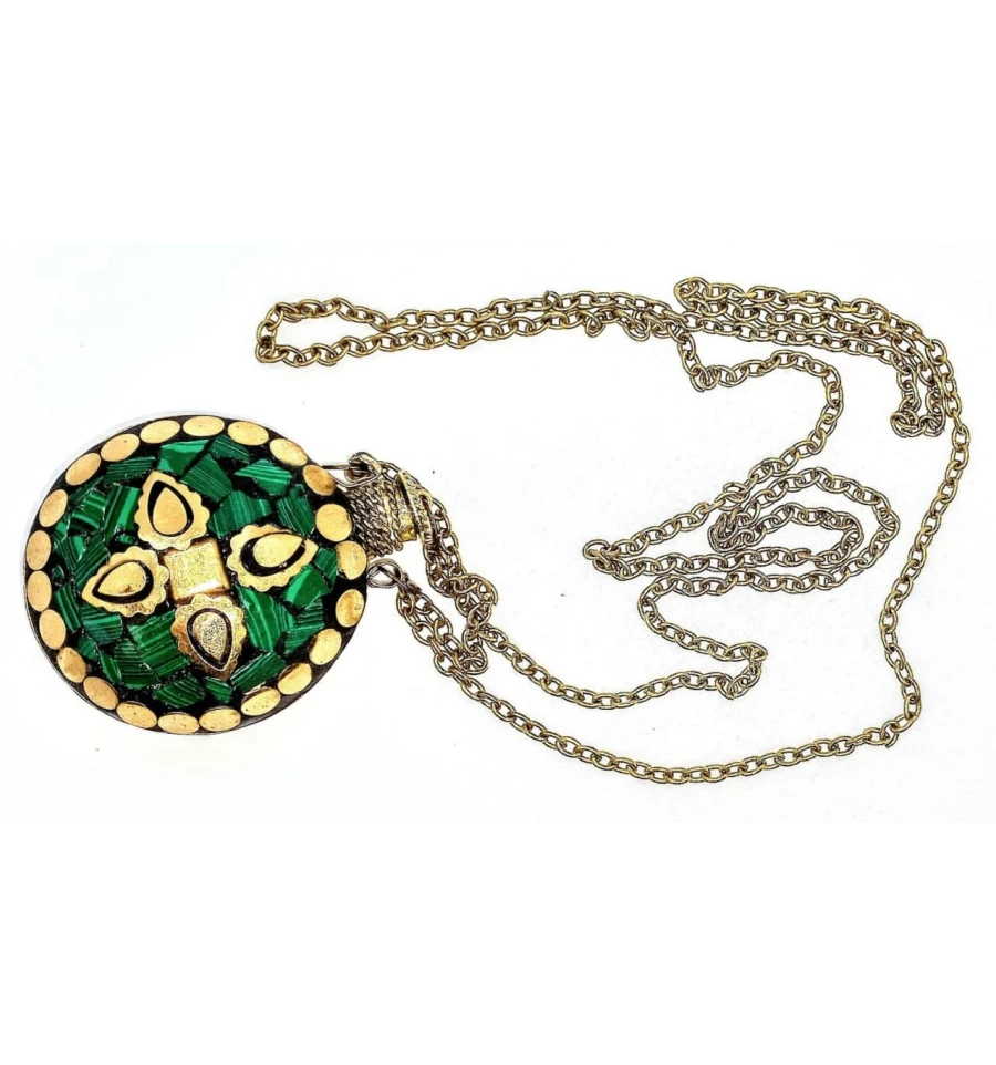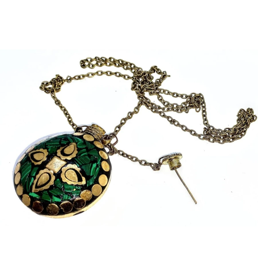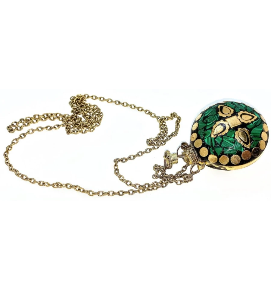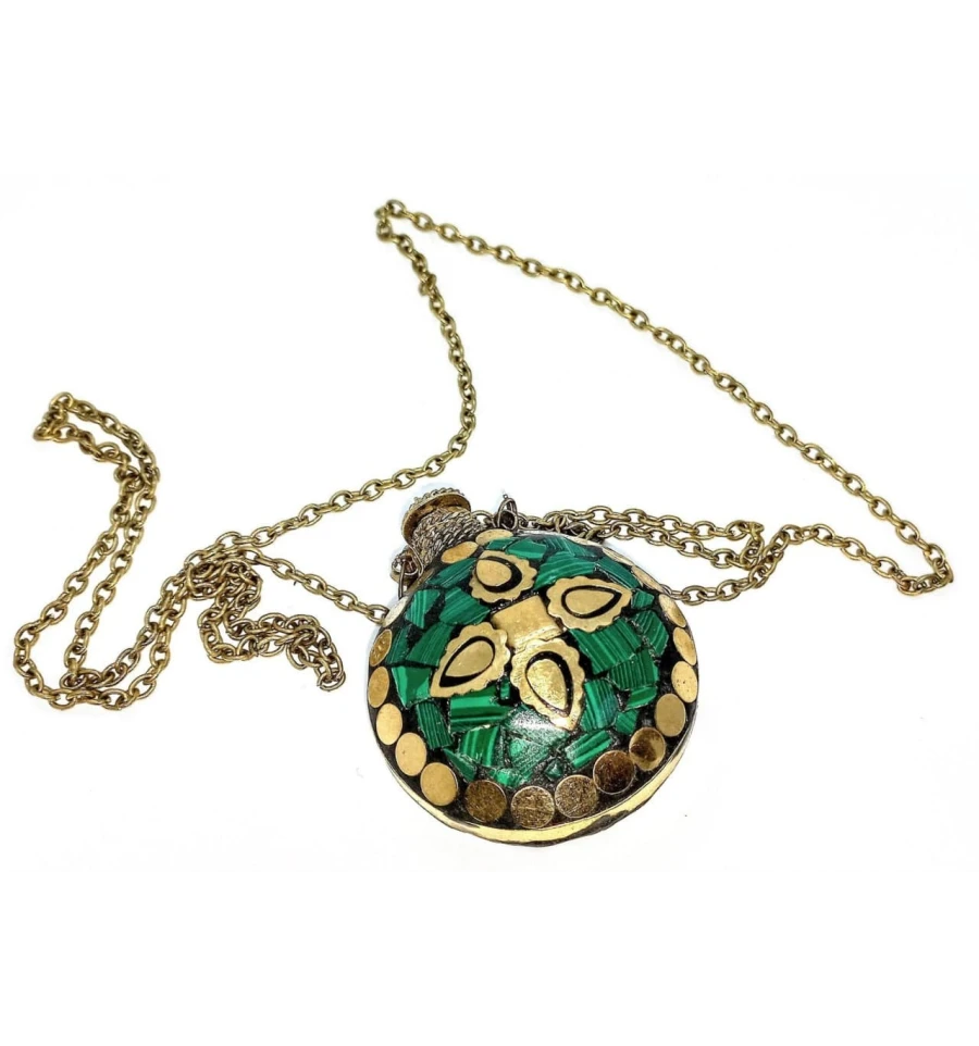 Аромакулон бронзовий інкрустований малахітом (5.5×4.5×2 см)
