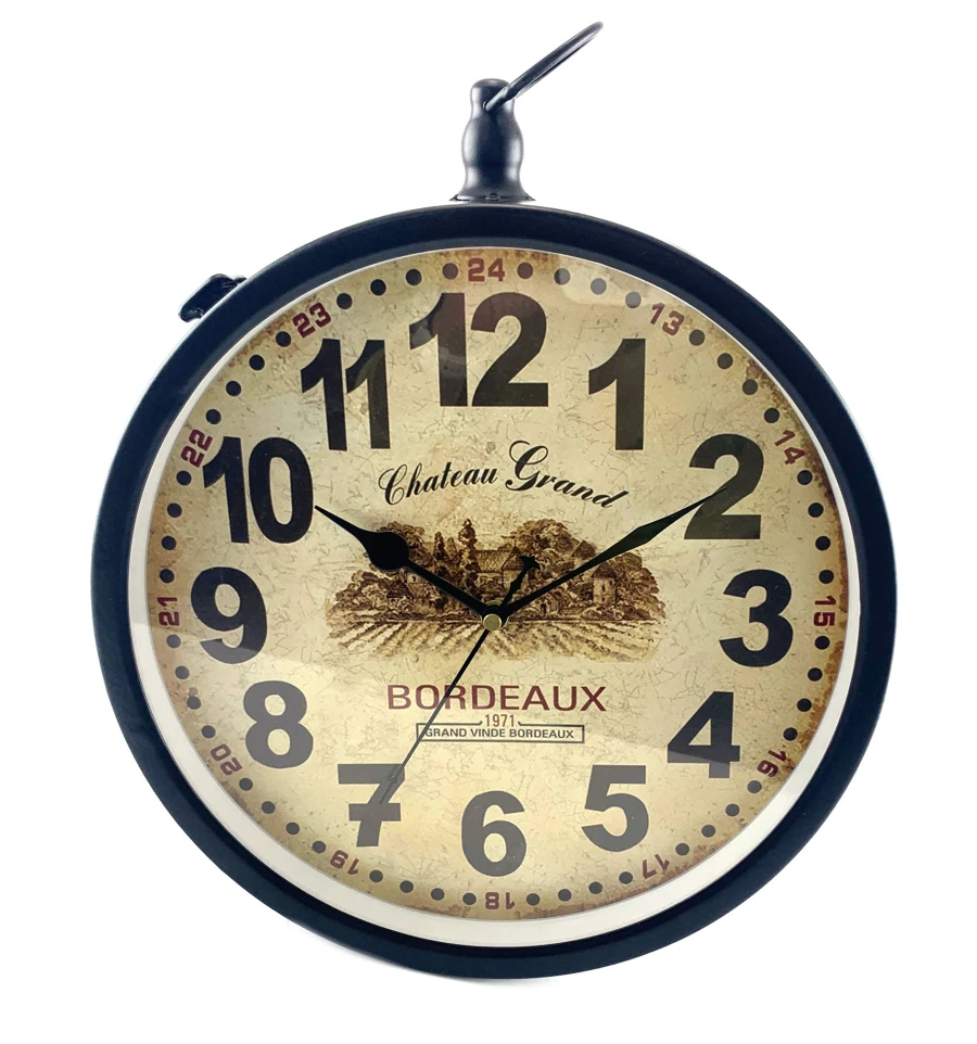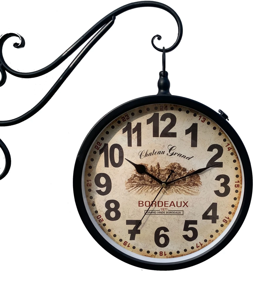 Станційний годинник "Bordeaux" - це винятково стильний спосіб додати шарм та практичність у ваш інтер'єр. З їх двостороннім дизайном та написом "Bordeaux," вони приносять ноту французької елегантності в будь-який простір.