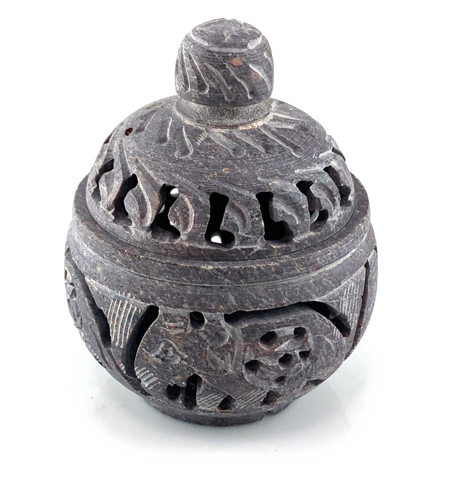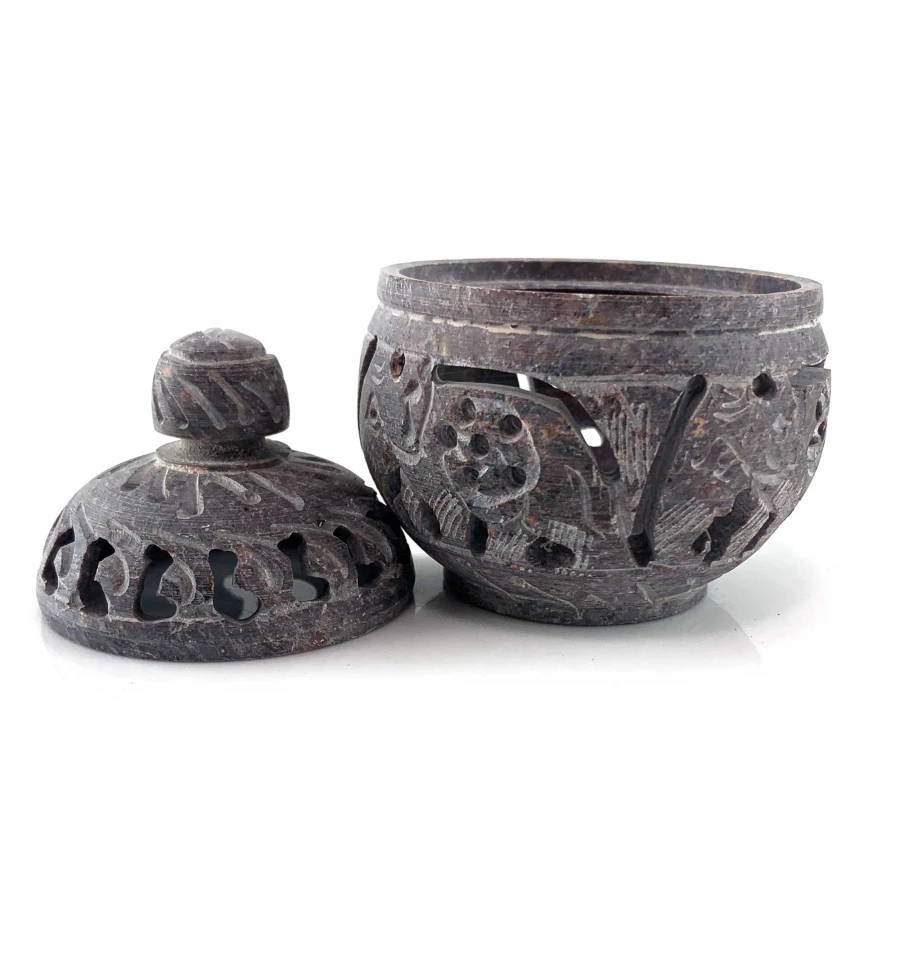 Виготовлений з натурального мильного каменю, цей свічник прослужить вам довгі роки, зберігаючи свою красу та неповторність. Додайте трохи розкоші та елегантності у ваш повсякденний досвід з цією чудовою курницею та свічником.