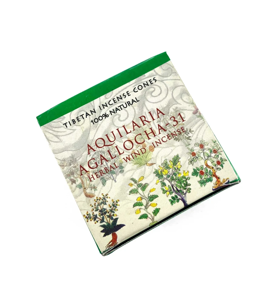 Пориньте у світ умиротворення та зцілення з нашими пахощами Тибету "Aquilaria agallocha-31". Це виключно ефективний засіб, розроблений доктором Долкаром, шановним цілителем з Тибету. Пахощі "Aquilaria agallocha-31" виготовлені з 31 натурального рослинного інгредієнта, включаючи цінну аквіларію асафетиду, миристику, коміфору, меконопсис, міробалан, адхатоду везику та хризантему. Ці пахощі є винятковим засобом для лікування "вітряних" розладів, спричинених фізичним та емоційним стресом.