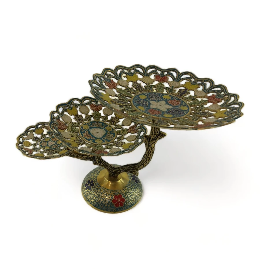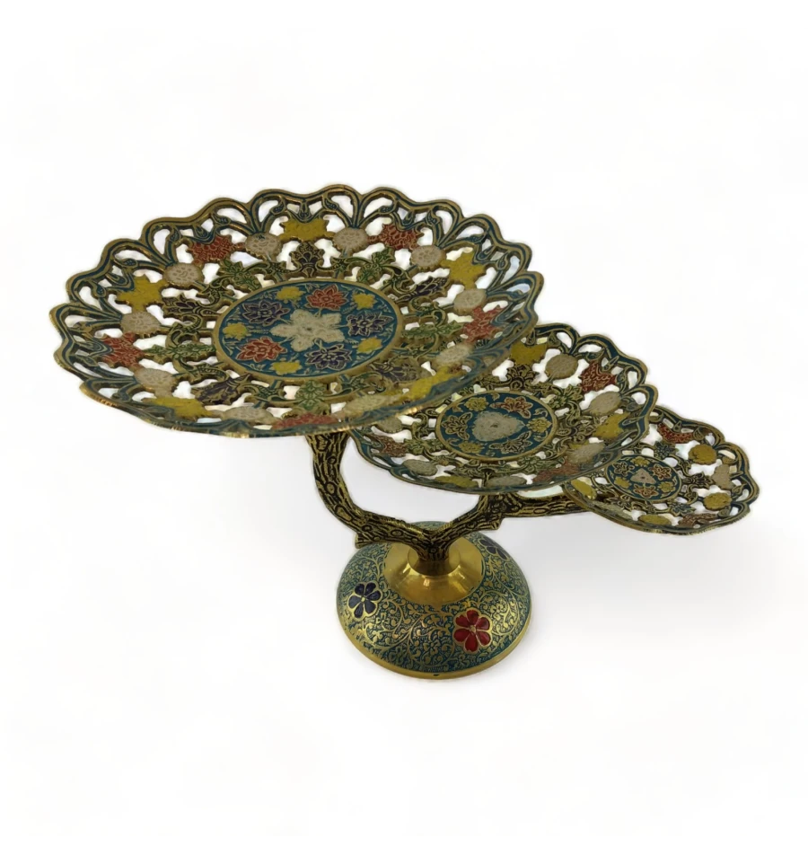 Ця бронзова фруктівниця - не просто функціональний предмет, а й витвір мистецтва. Вишуканий малюнок кольорів, на кожному рівні, створює враження справжнього твору ремесла. Шляхетний матеріал та елегантний дизайн роблять цю фруктівницю унікальним акцентом у вашому будинку.