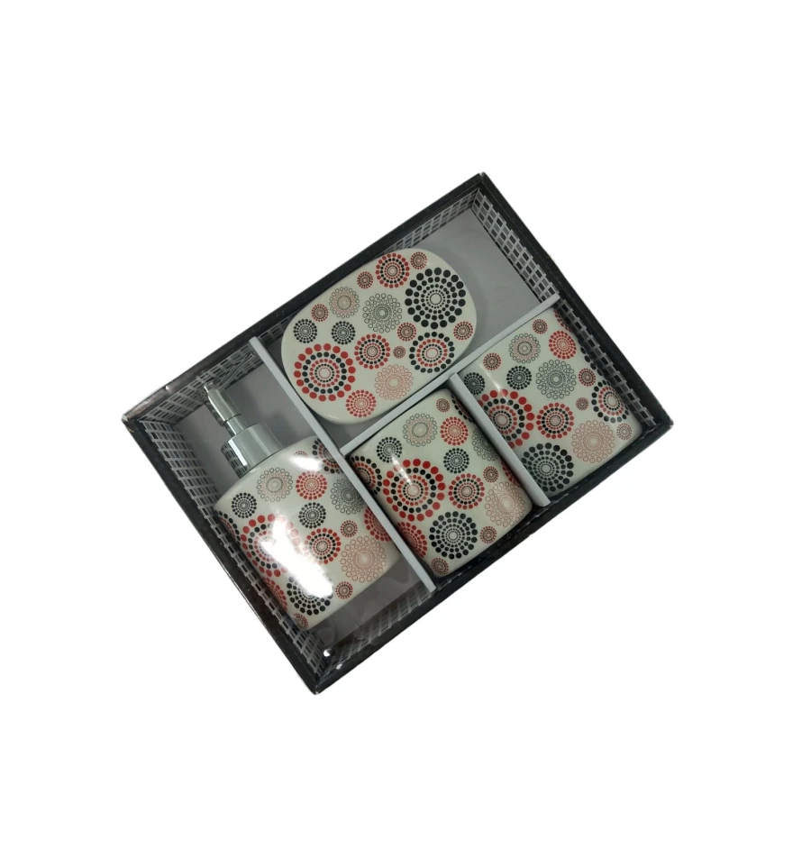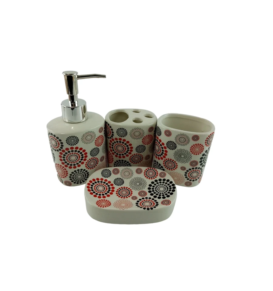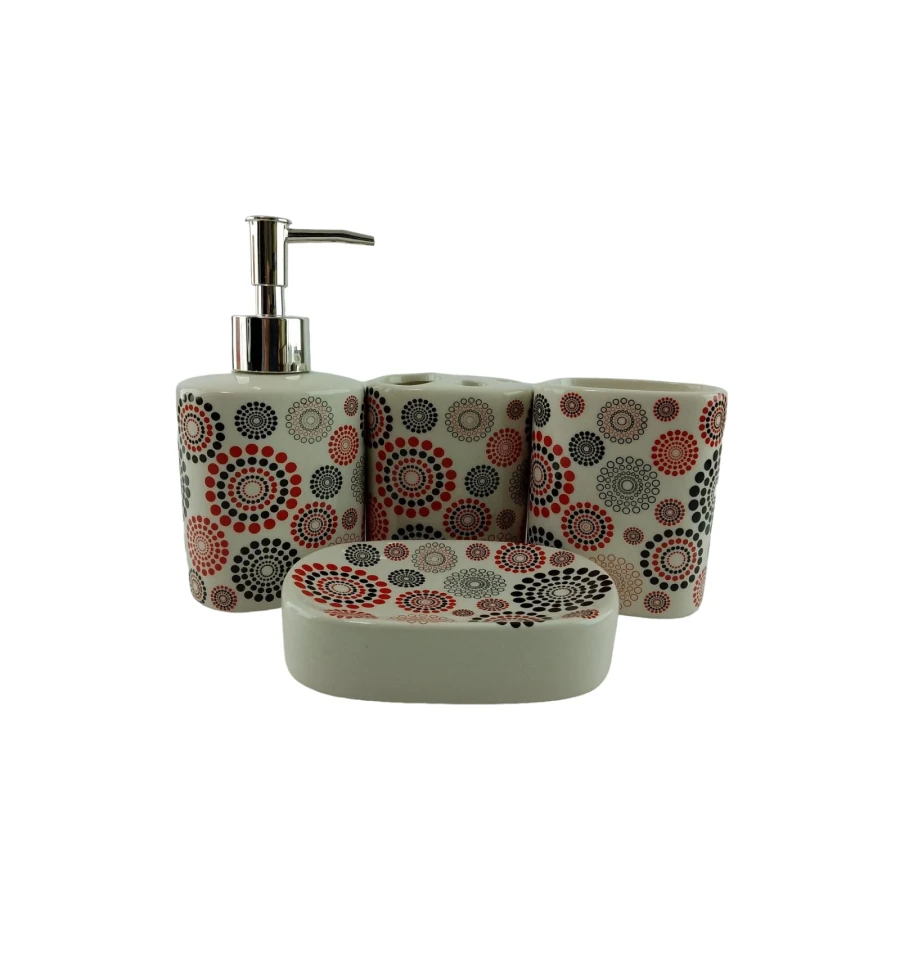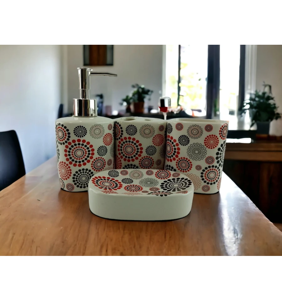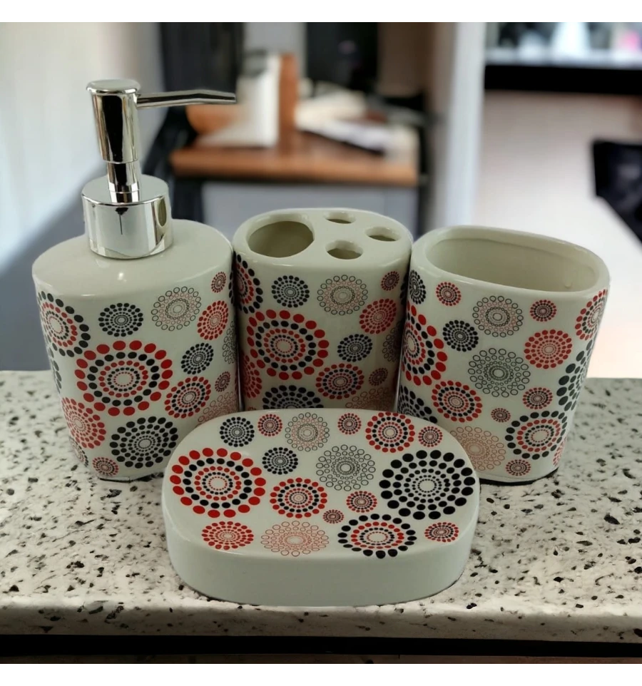 З чарівним набором аксесуарів для ванної кімнати всі предмети будуть на своїх місцях. У керамічний набір входить дозатор для рідкого мила, склянка, органайзер для зубних щіток, мильниця.