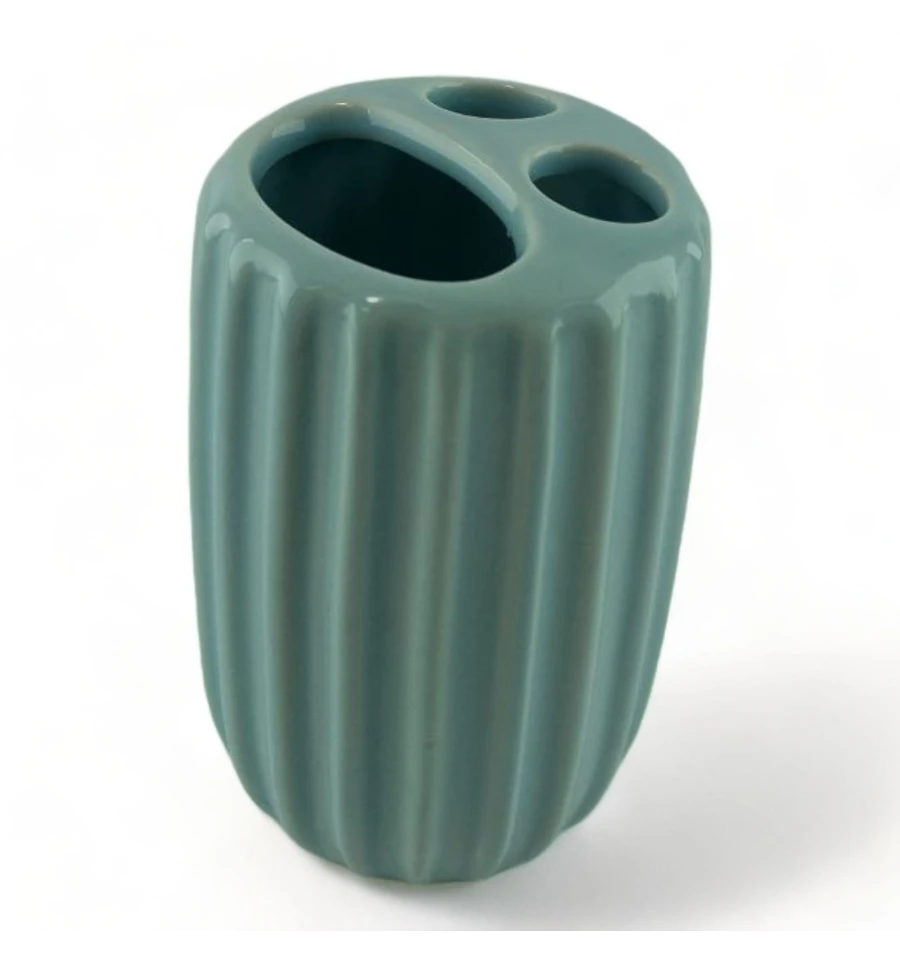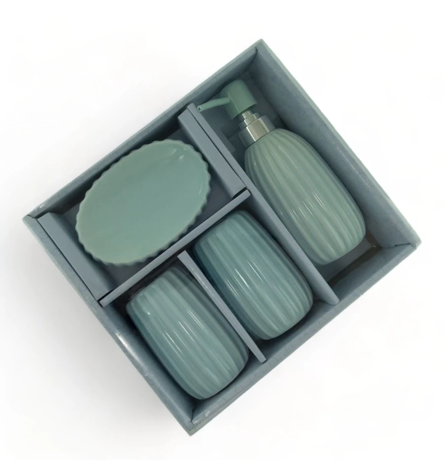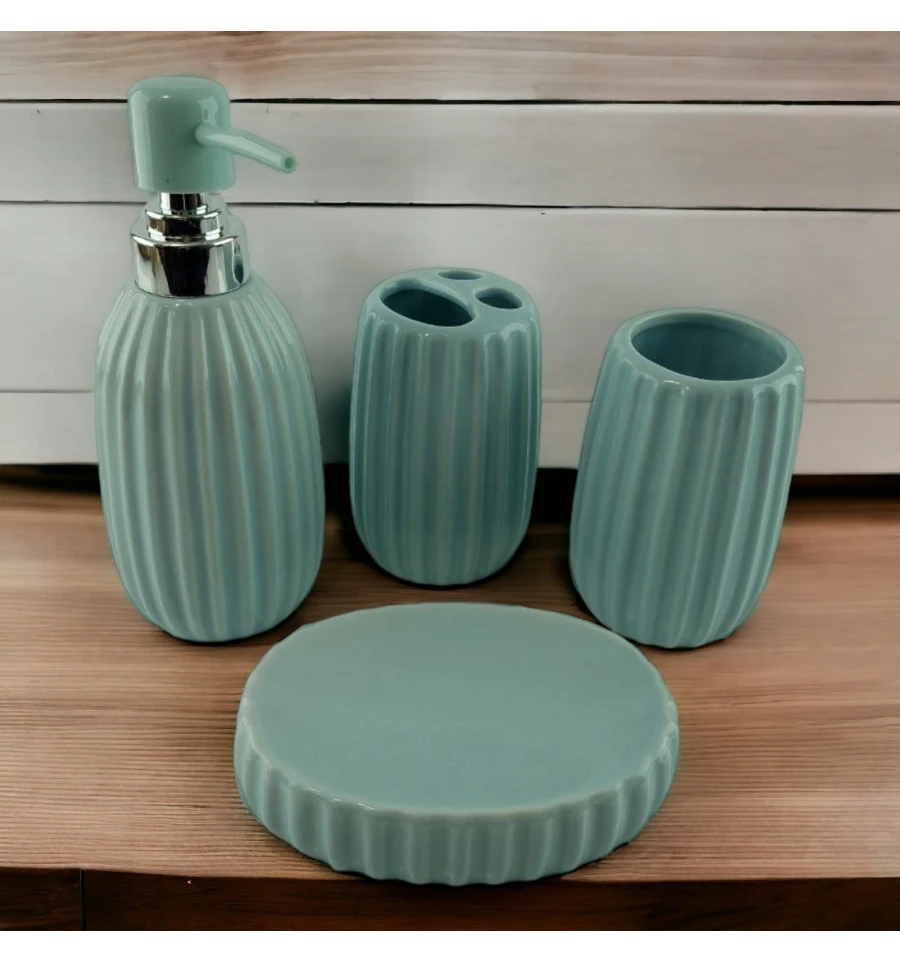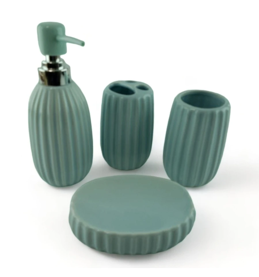 З чарівним набором аксесуарів для ванної кімнати всі предмети будуть на своїх місцях. У керамічний набір входить дозатор для рідкого мила, склянка, органайзер для зубних щіток, мильниця.
