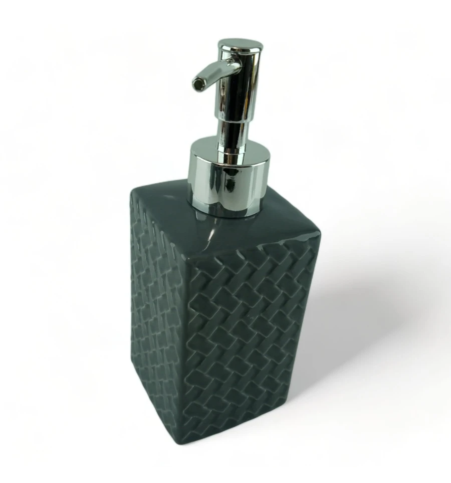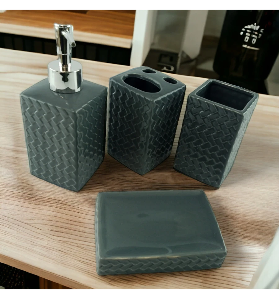 З чарівним набором аксесуарів для ванної кімнати всі предмети будуть на своїх місцях. У керамічний набір входить дозатор для рідкого мила, склянка, органайзер для зубних щіток, мильниця.