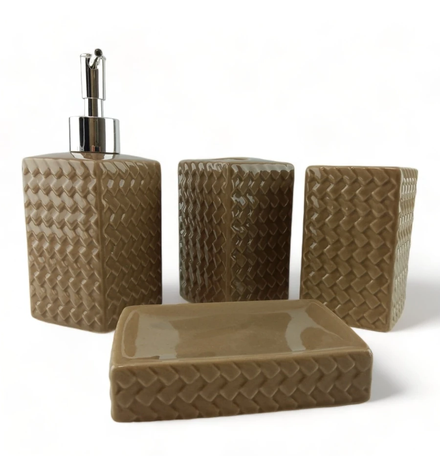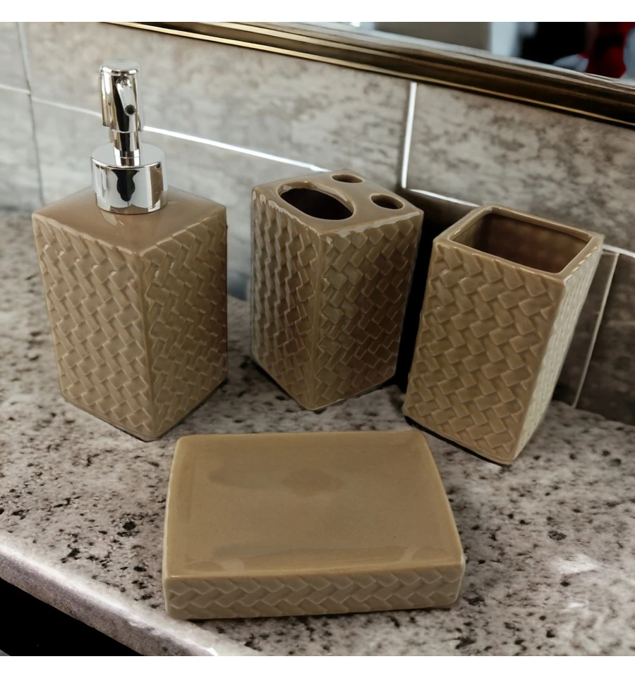 З чарівним набором аксесуарів для ванної кімнати всі предмети будуть на своїх місцях. У керамічний набір входить дозатор для рідкого мила, склянка, органайзер для зубних щіток, мильниця.