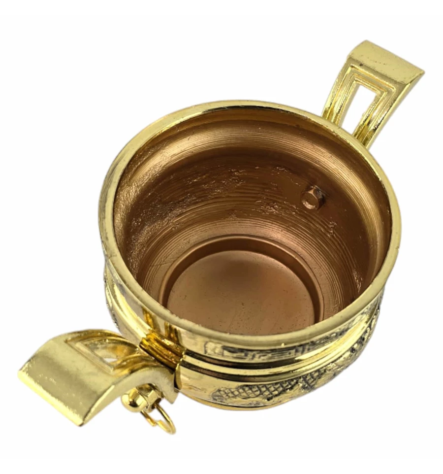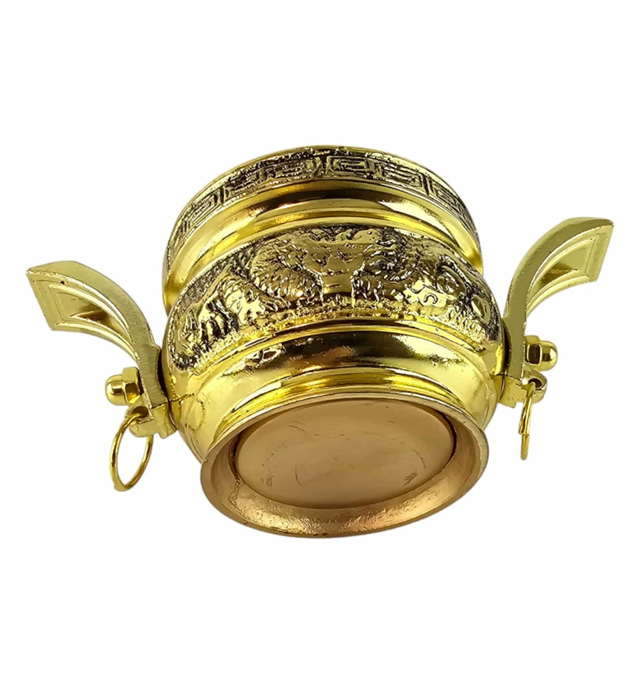 Представляємо вам курильницю - кадильницю золотистого кольору, виготовлену з металу, від виробника з Китаю. Ця курильниця не тільки стане чудовим аксесуаром для куріння ароматичних речовин, але й привнесе у ваш простір культурні та декоративні елементи від китайської традиції.