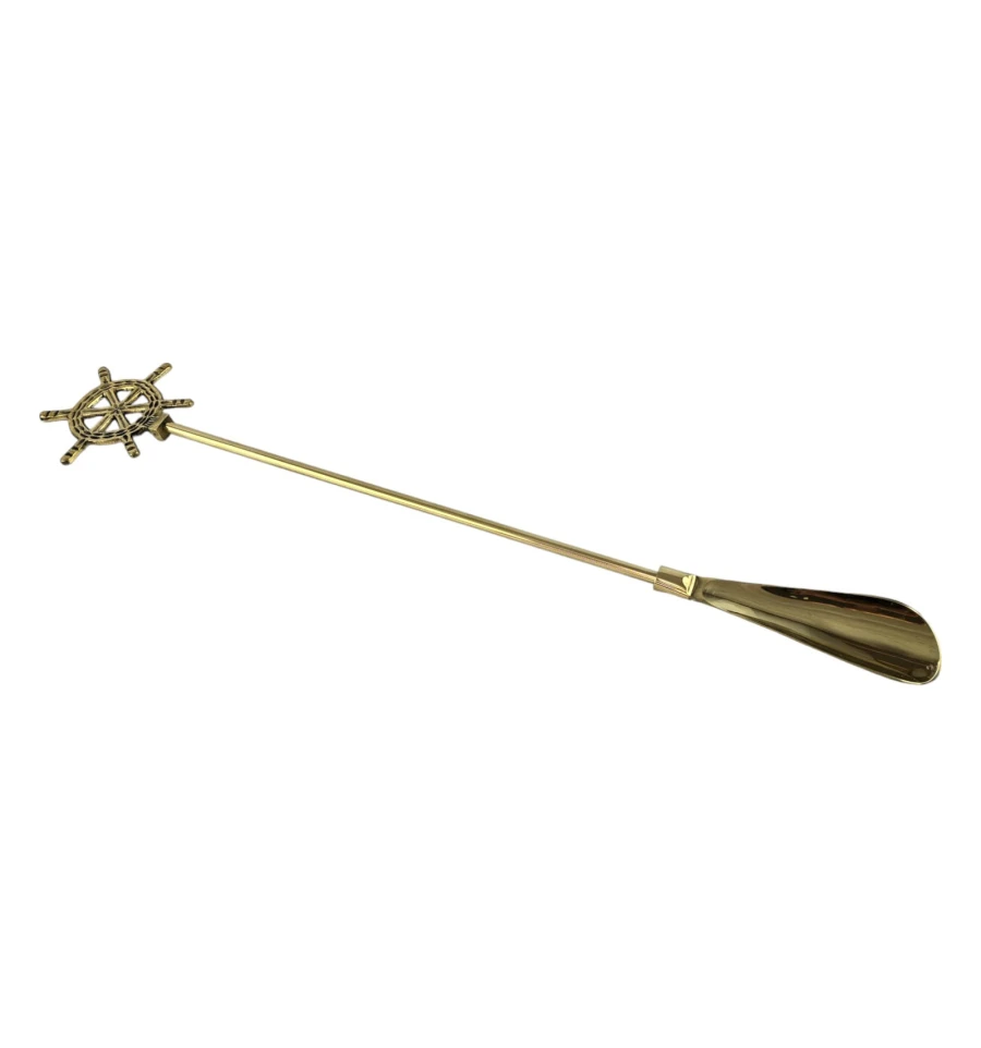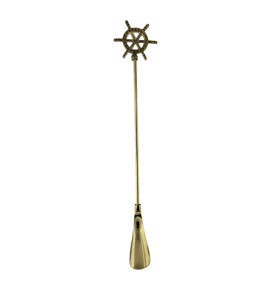 Ложка для взуття, виготовлена з бронзи та виготовлена в Індії, це не тільки практичний інструмент, але й чудовий морський сувенір, який надихає на подорожі та пригоди на морі. Загальна довжина цієї ложки становить 48 см, а ширина самої ложки - 4 см. Ложка має довгу ручку, що полегшує використання, та прикрашена бронзовим стилізованим штурвалом, який надає їй унікального морського шарму.