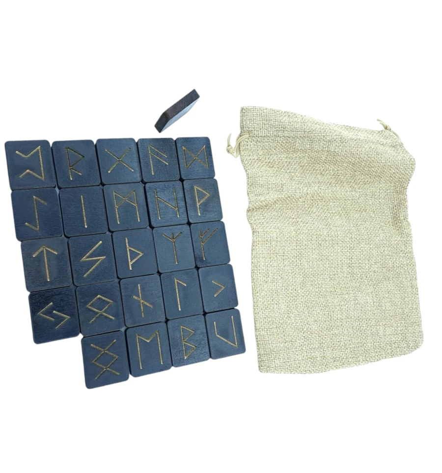 Руни «Скандинавські» темні, 25 рун (3.1×2.7×0.7 см) з мішечком, масив дерева