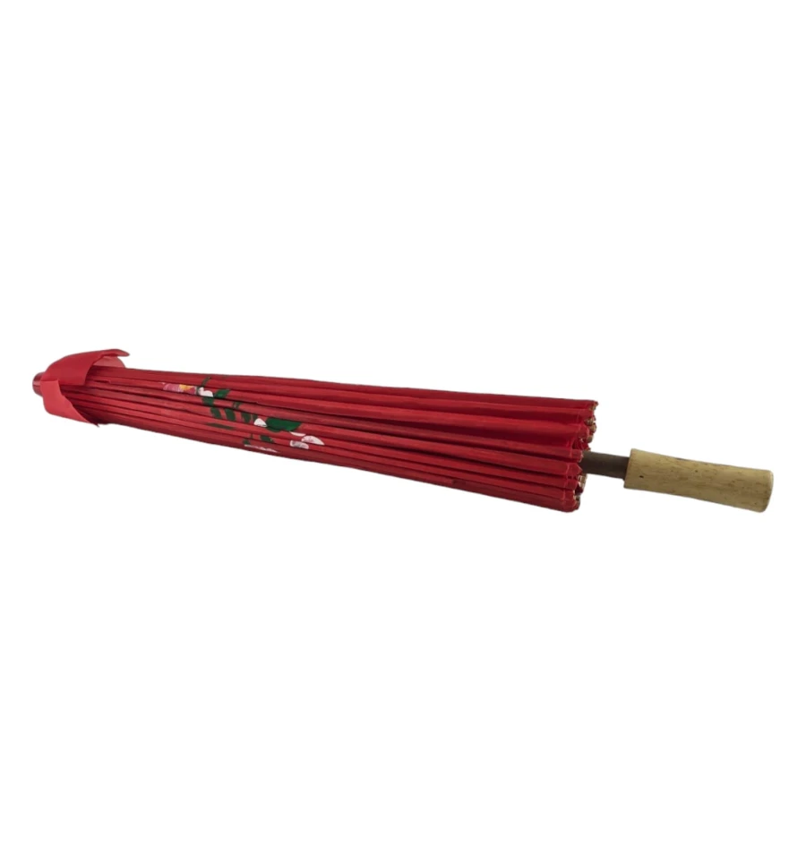Ця дивовижна парасолька є втіленням вишуканості і традицій. Він виготовлений з легкого та міцного бамбука, який надає йому невагомості та природної краси. Покриття з натурального шовку, червоного кольору, додає вишуканості та надає цій парасольці унікального зовнішнього вигляду.