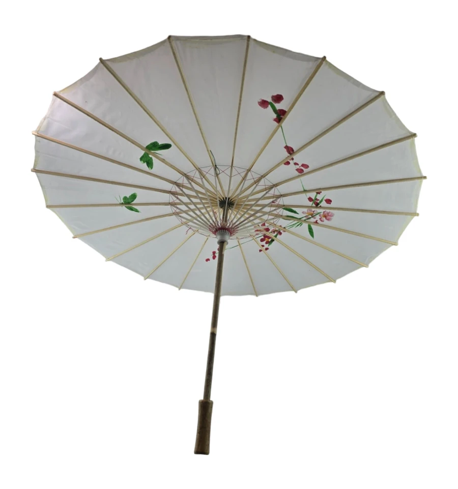 Ця дивовижна парасолька є втіленням вишуканості і традицій. Він виготовлений з легкого та міцного бамбука, який надає йому невагомості та природної краси. Покриття з натурального шовку, білого кольору, додає вишуканості та надає цій парасольці унікального зовнішнього вигляду.
