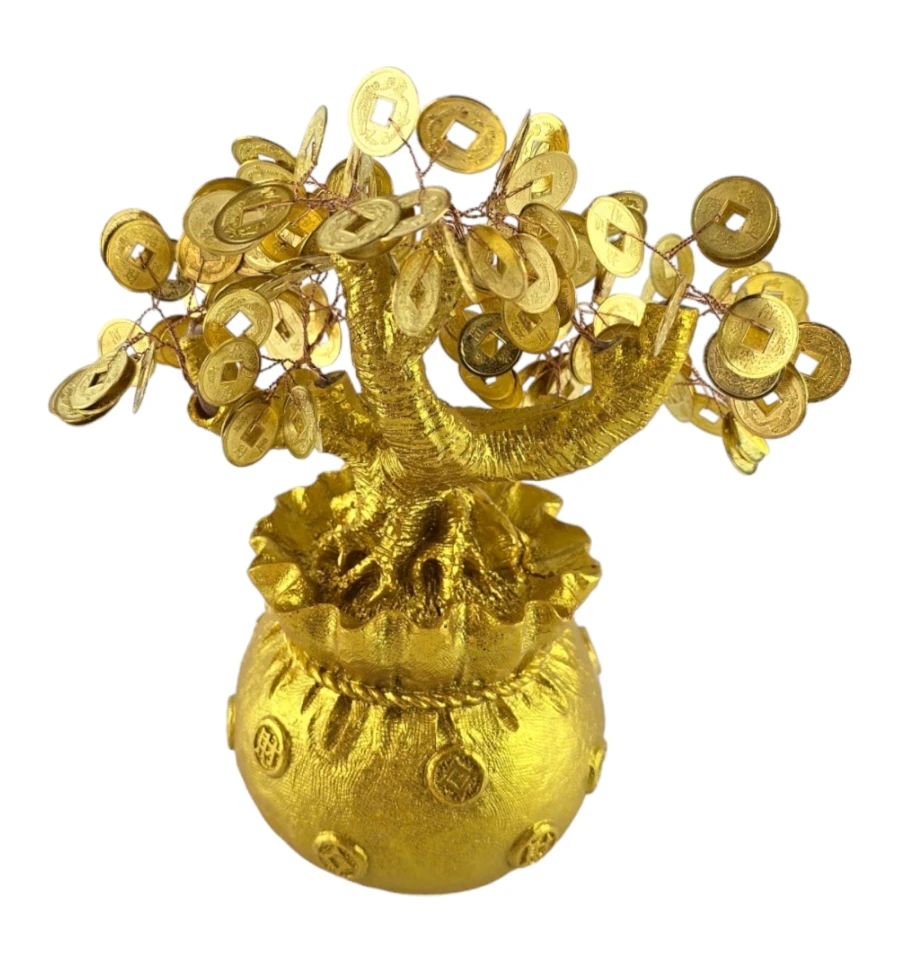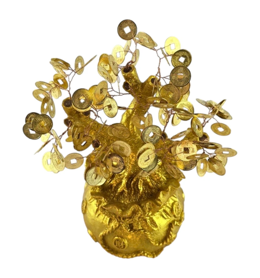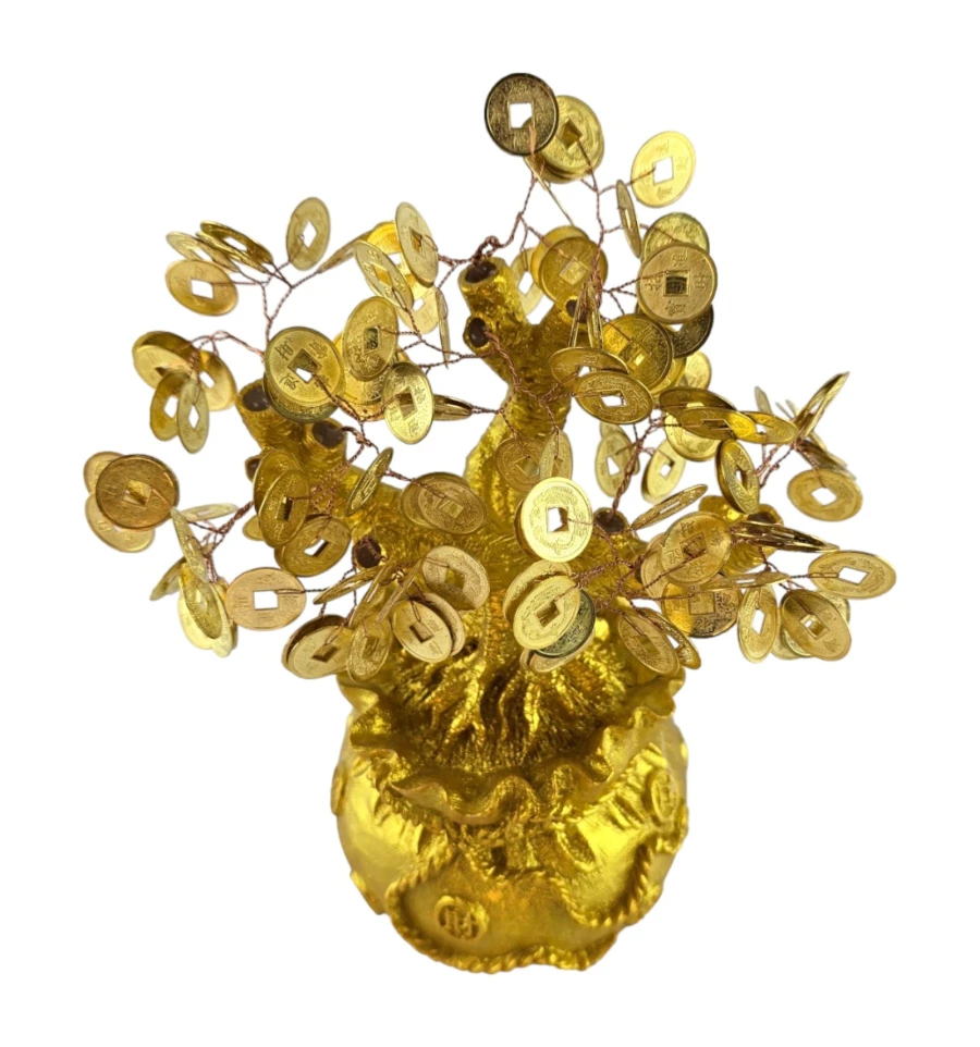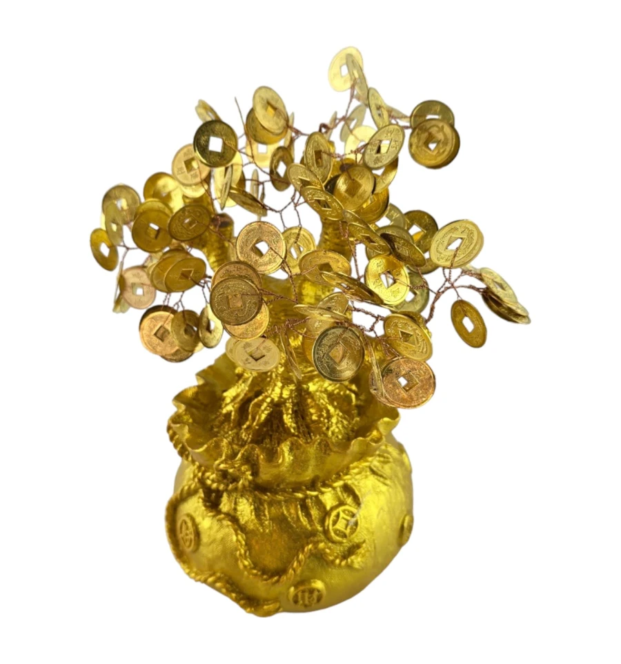 Золотисті китайські монетки, вкладені в мішечок, не лише надають дереву елегантного вигляду, а й символізують постійний потік фінансового успіху. Дане грошове дерево стане не тільки красивим елементом декору, але й потужним амулетом, що приваблює позитивні зміни у вашому житті.