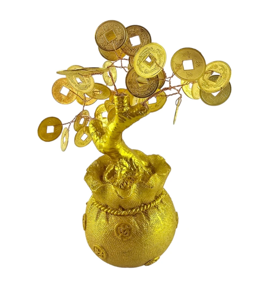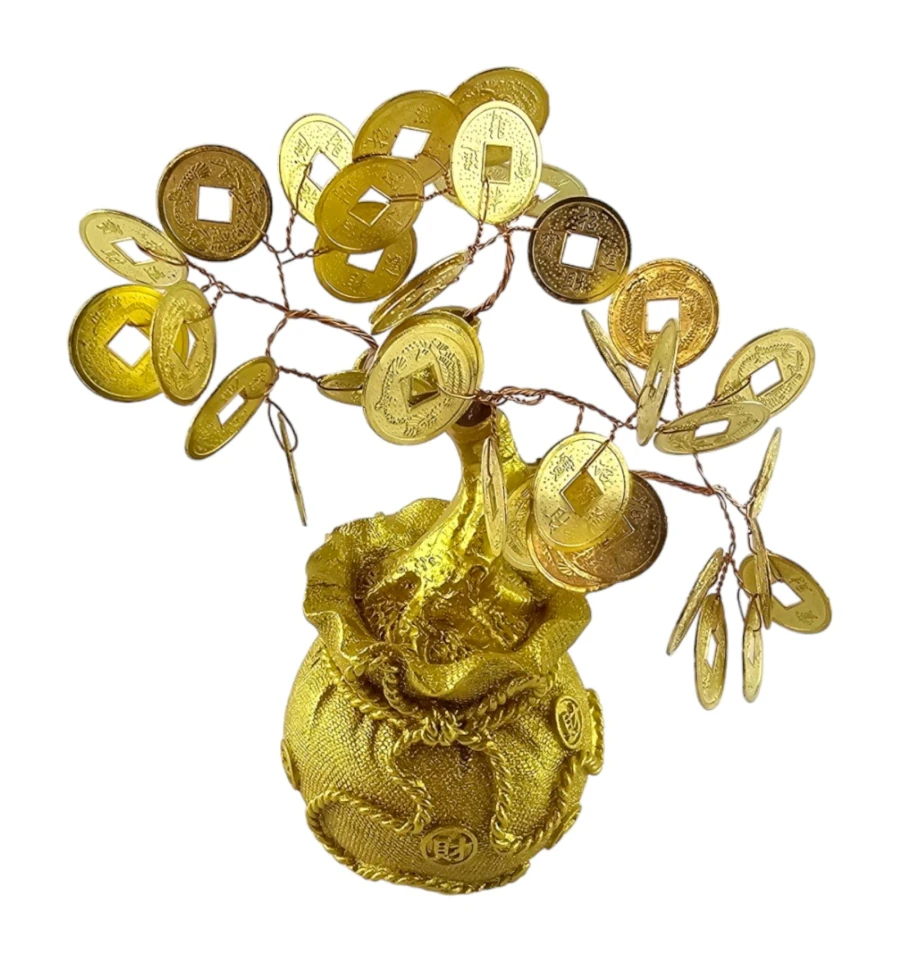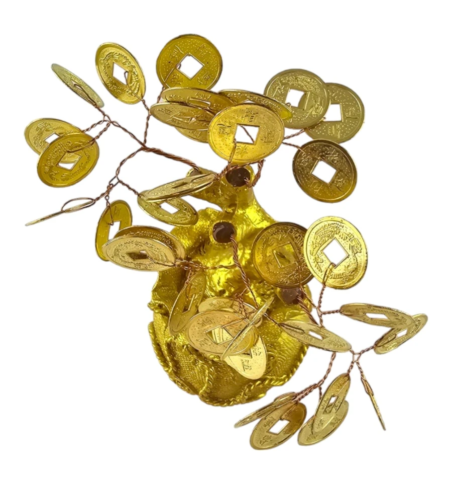 Золотисті китайські монетки, вкладені в мішечок, не лише надають дереву елегантного вигляду, а й символізують постійний потік фінансового успіху. Дане грошове дерево стане не тільки красивим елементом декору, але й потужним амулетом, що приваблює позитивні зміни у вашому житті.