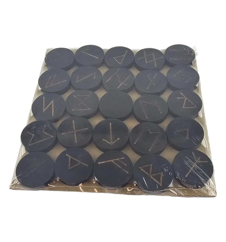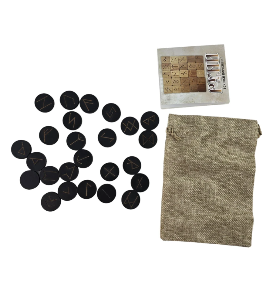 Розмір руни d=31мм -. У наборі 25 рун та опис: значення рун та техніка ворожіння. Руни з вільхи покриті емаллю. Руни – це давня скандинавська та слов'янська писемність. Кожна літера в скандинавському рунічному алфавіті мала свою назву та своє значення. Самі скандинави вважали, що руни мають потужну енергетику і велику силу, тому використовували їх для ворожіння та захисту.