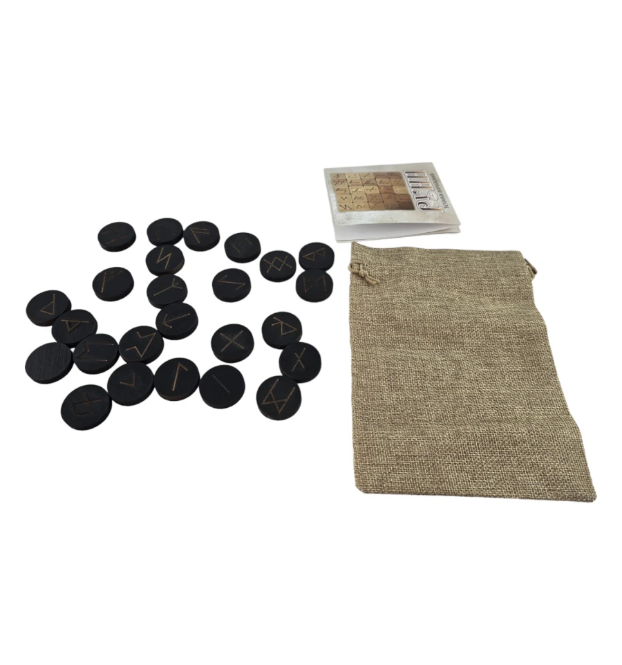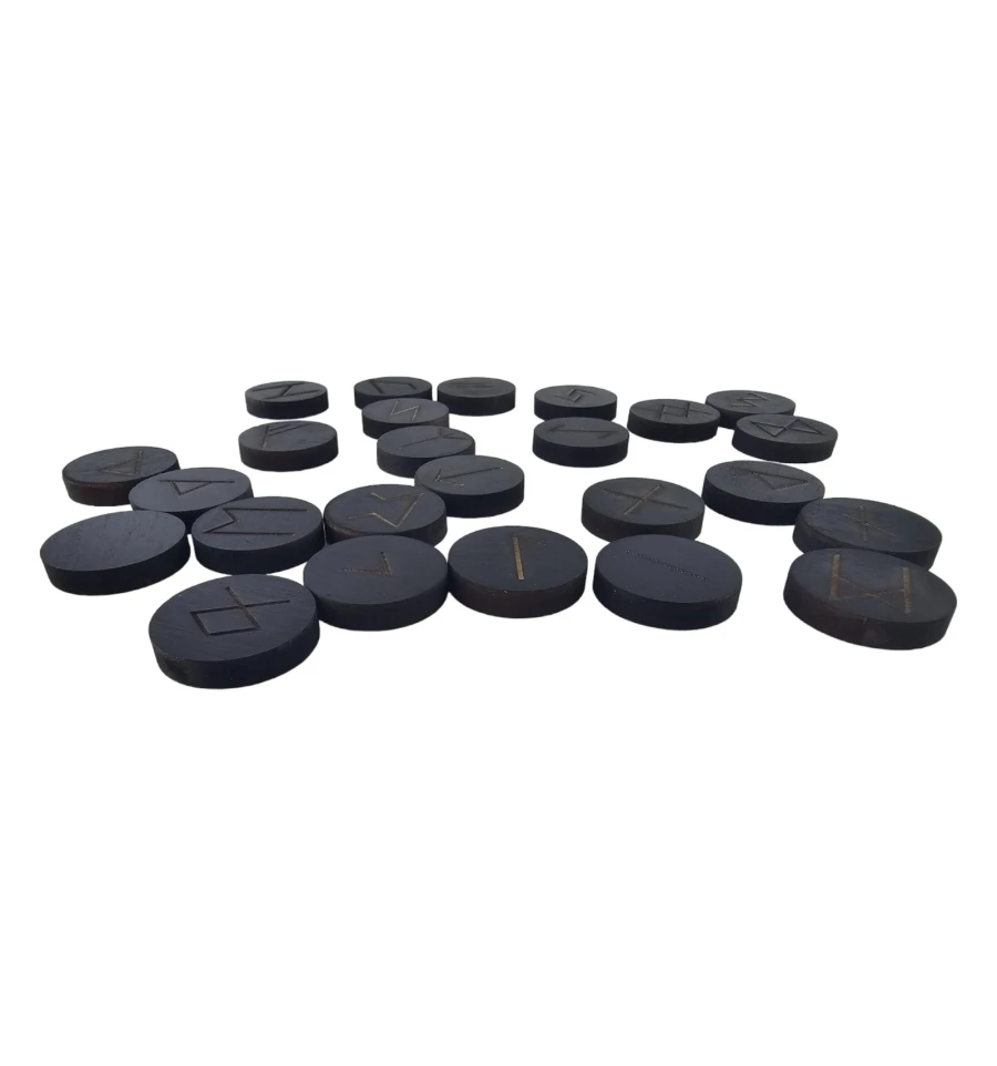 Руни «Скандинавські» круглі, темні, 25 рун (d-3.1 см, h-0.7 см) з мішечком, масив дерева