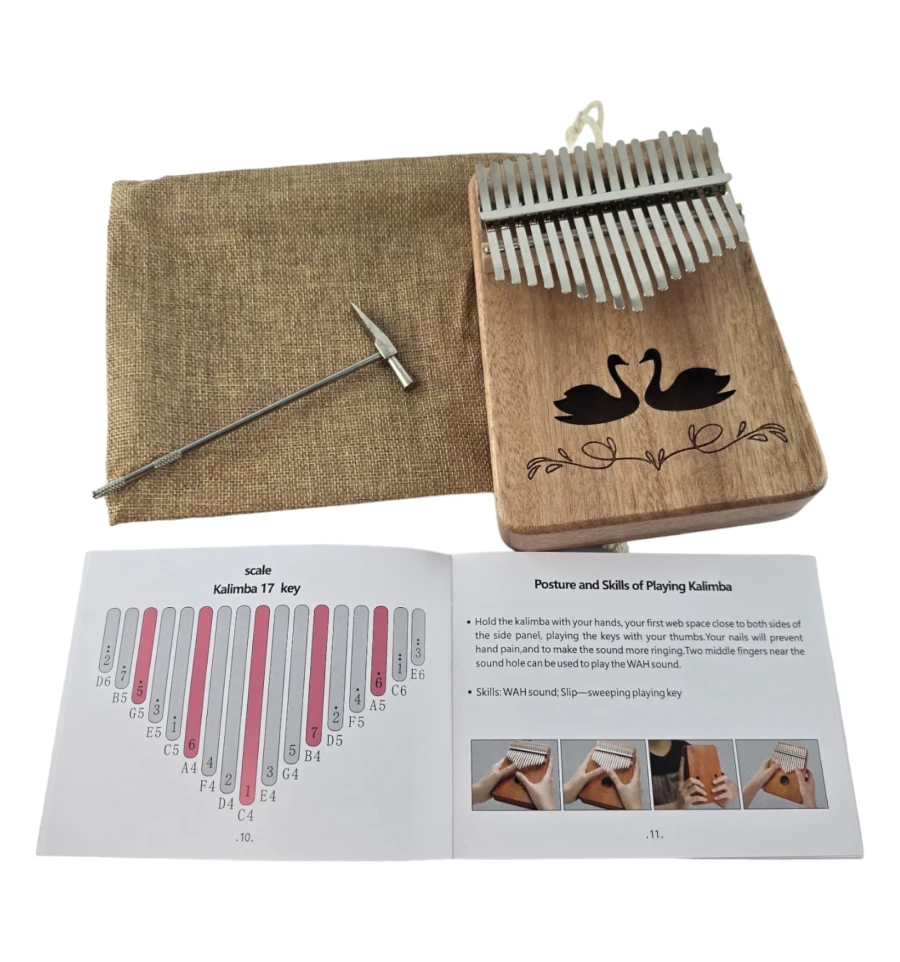 Цей набір не лише музичний інструмент, а й витвір мистецтва, який стане чудовим подарунком для музикантів та прикрасою будь-якого музичного ансамблю. Пожвавіть свої мелодії з калімбою у вишуканому відтінку натурального дерева!