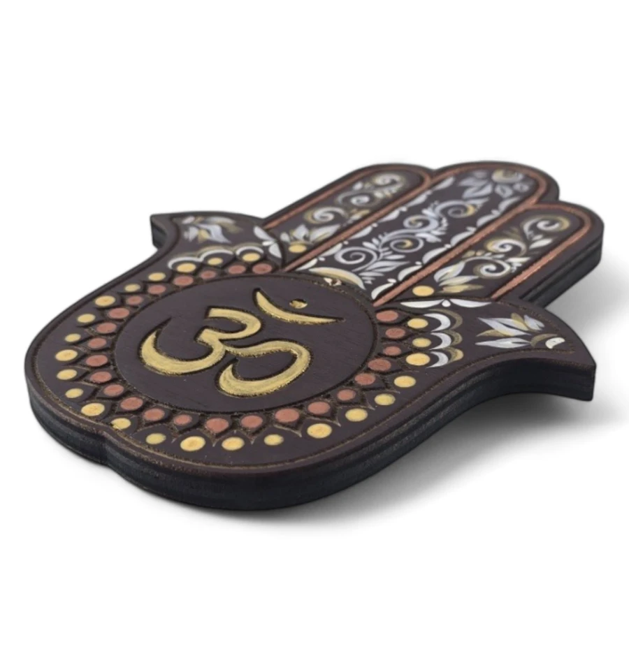 Ця підставка не тільки втілює в собі красу та символізм, а й є практичним та функціональним предметом вашого інтер'єру. Дозвольте собі насолоджуватися моментами гармонії та спокою в оточенні цієї чудової підставки під пахощі "ОМ" Хамса.