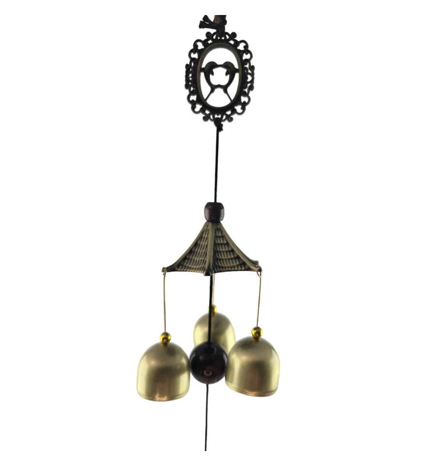 На першому плані чудовий медальйон, прикрашений витонченим зображенням двох дельфінів, що символізують свободу та грацію. Наступний елемент – пагода, що височіє серед гілок, що створюють мелодійний звук під впливом природного вітру. Три розгалуження з дзвіночками золотистого кольору надають композиції вишуканого шарму та шляхетності.