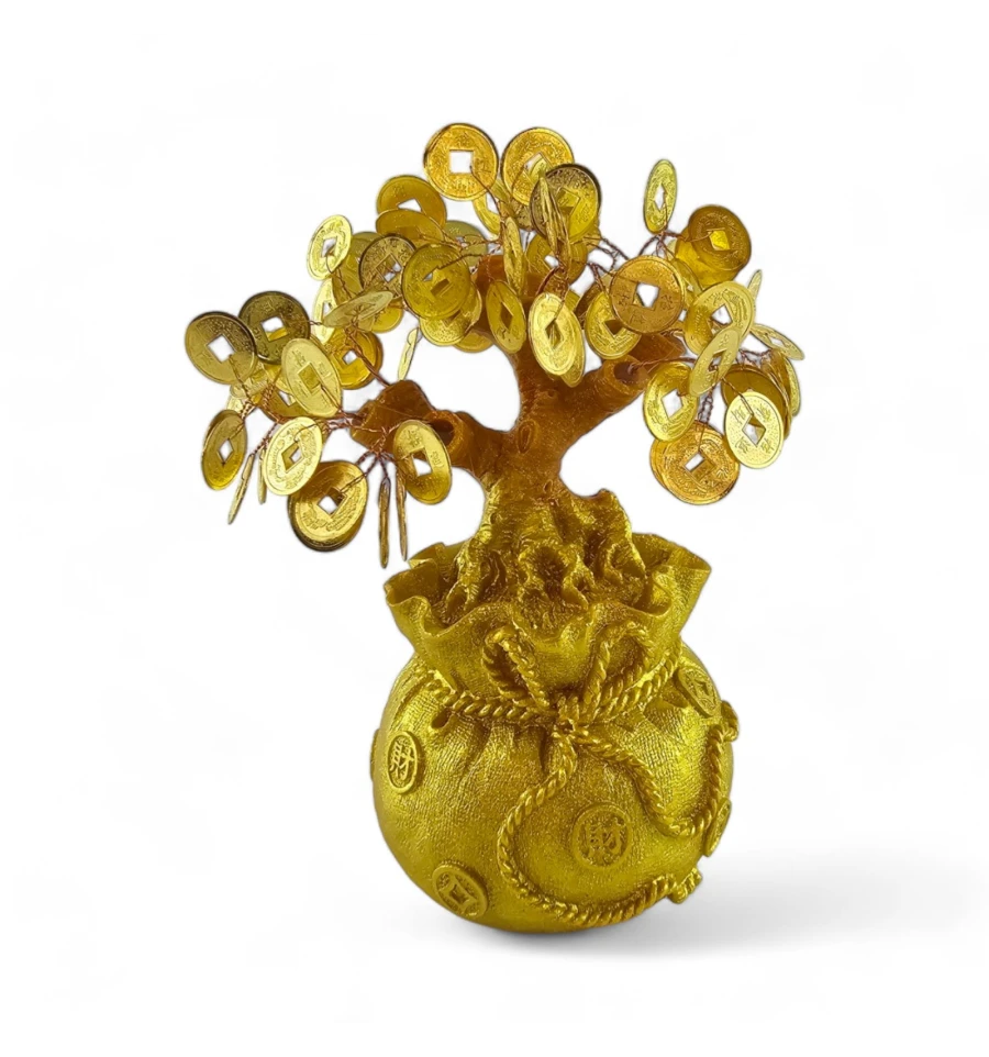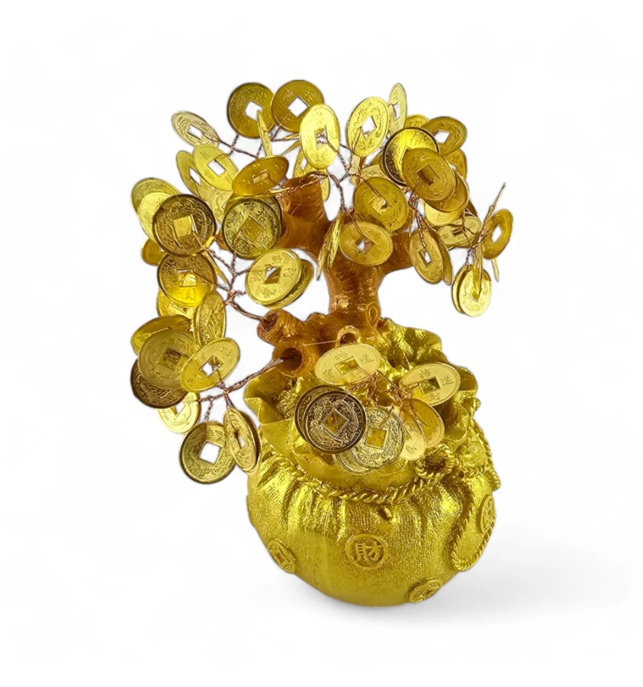 Золотисті китайські монетки, вкладені в мішечок, не лише надають дереву елегантного вигляду, а й символізують постійний потік фінансового успіху. Дане грошове дерево стане не тільки красивим елементом декору, але й потужним амулетом, що приваблює позитивні зміни у вашому житті.
