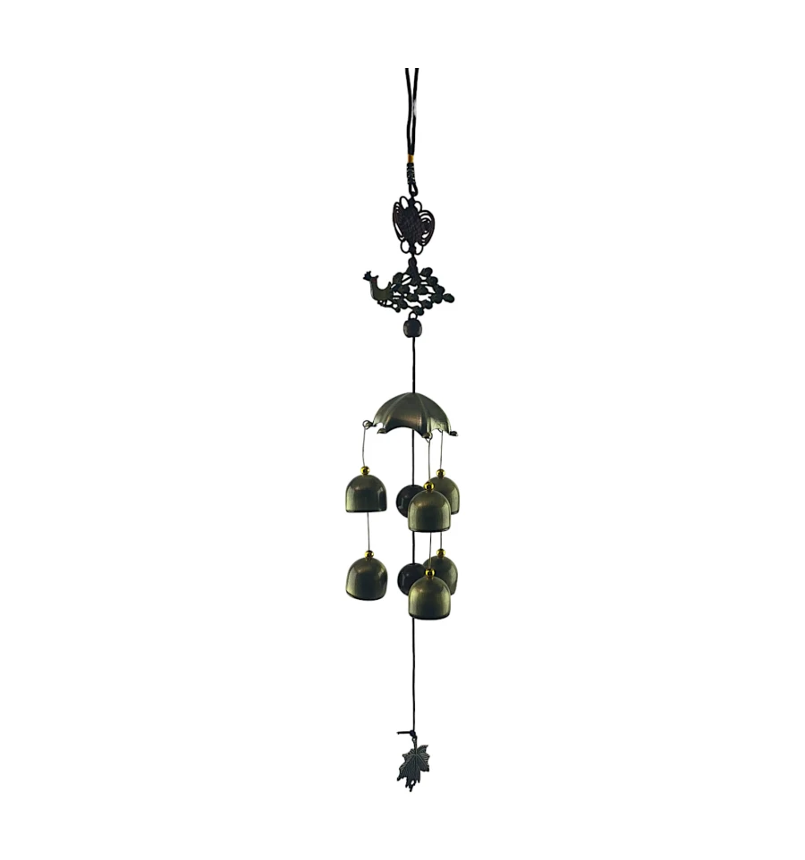 Ця музика вітру виконана з високоякісних матеріалів, що надають виробу довговічності та естетичної привабливості. Бронзові дзвіночки видають приємні мелодійні звуки при найменшому подиху вітру, створюючи атмосферу спокою та благополуччя.