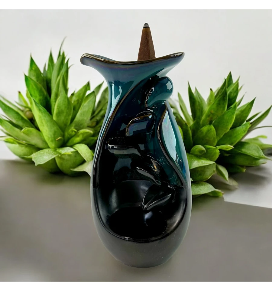 Створіть атмосферу умиротворення з підставкою для пахощів "Тиха Вода". Цей стильний аксесуар виконаний у вигляді вигнутого водоспаду, яким повільно стікає дим, створюючи ефект каскадного потоку. Чорний блиск кераміки підкреслює витончені вигини форми, а плавний перебіг диму зачаровує та занурює у стан спокою. Підставка "Тиха Вода" стане чудовим доповненням до вашого інтер'єру, створюючи відчуття затишку та розслабленості, ідеально підходячи для медитацій, релаксації та створення комфортної атмосфери будинку.
