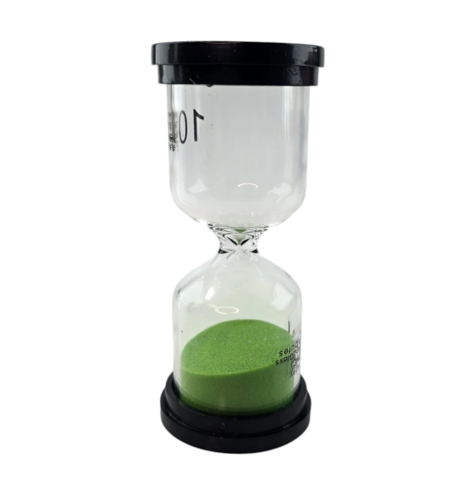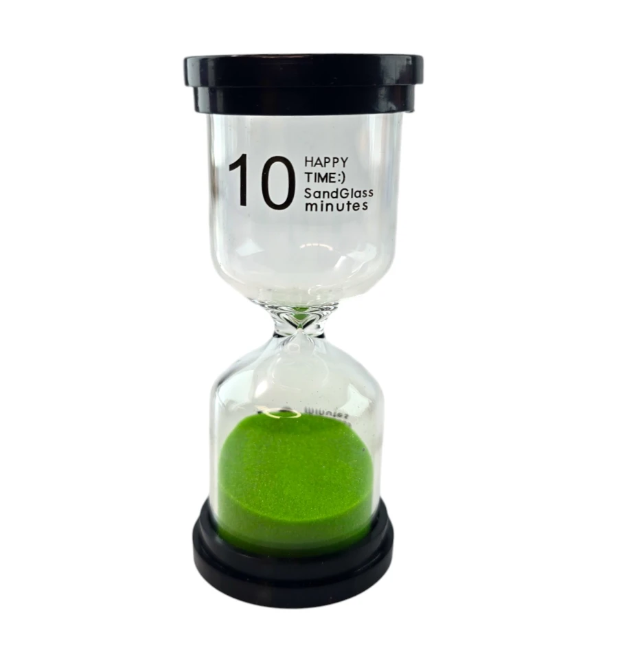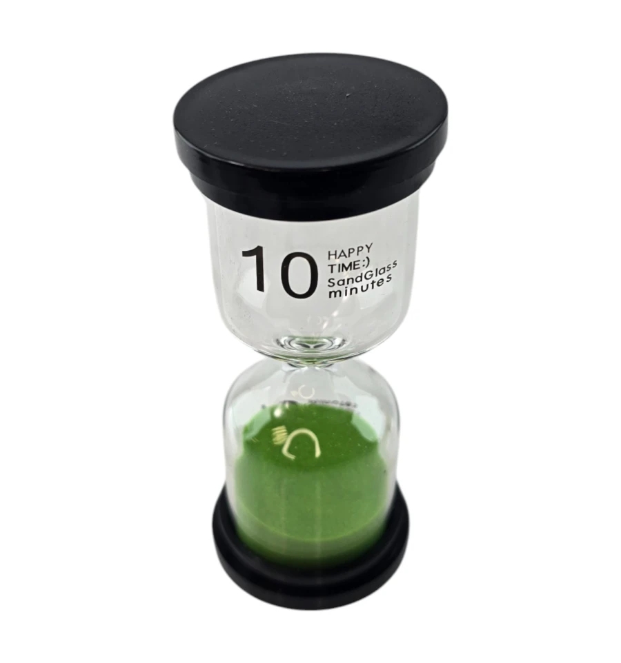 Годинник пісочний (10 хвилин) зелений пісок (10×4.5×4.5 см)