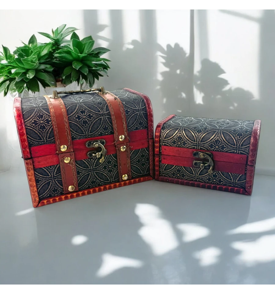 Відкрийте для себе вишуканий набір із двох скриньок у класичному стилі, який стане прикрасою вашого інтер'єру та чудовим місцем для зберігання цінних дрібниць. Ці скриньки, виготовлені в Китаї, поєднують у собі вінтажну естетику та функціональність, підійдуть для зберігання прикрас, пам'ятних речей або невеликих аксесуарів.