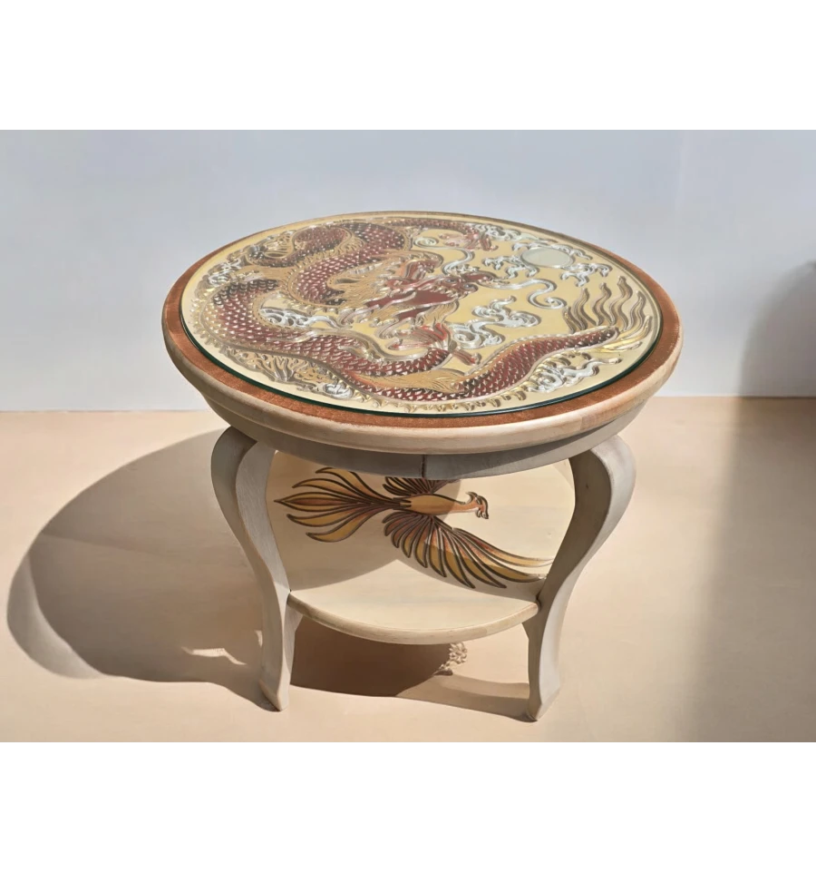 На нижній полиці столу зображено фенікс, що символізує відродження та вічне життя, доповнюючи образ дракона. Це надає столу особливої глибини та унікальності, роблячи його центральним елементом будь-якого інтер'єру.
