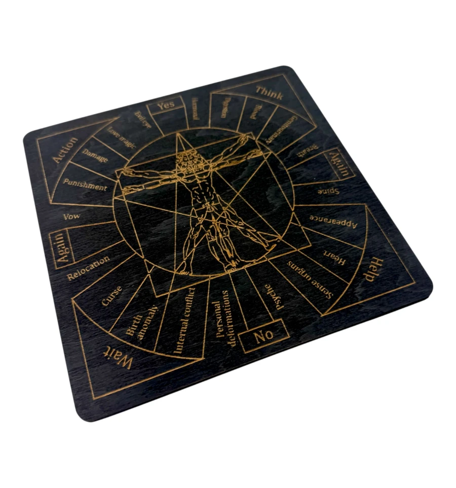 Таблиця для роботи з маятником "Магічні дії" – Темна (18×18×0,4 см)