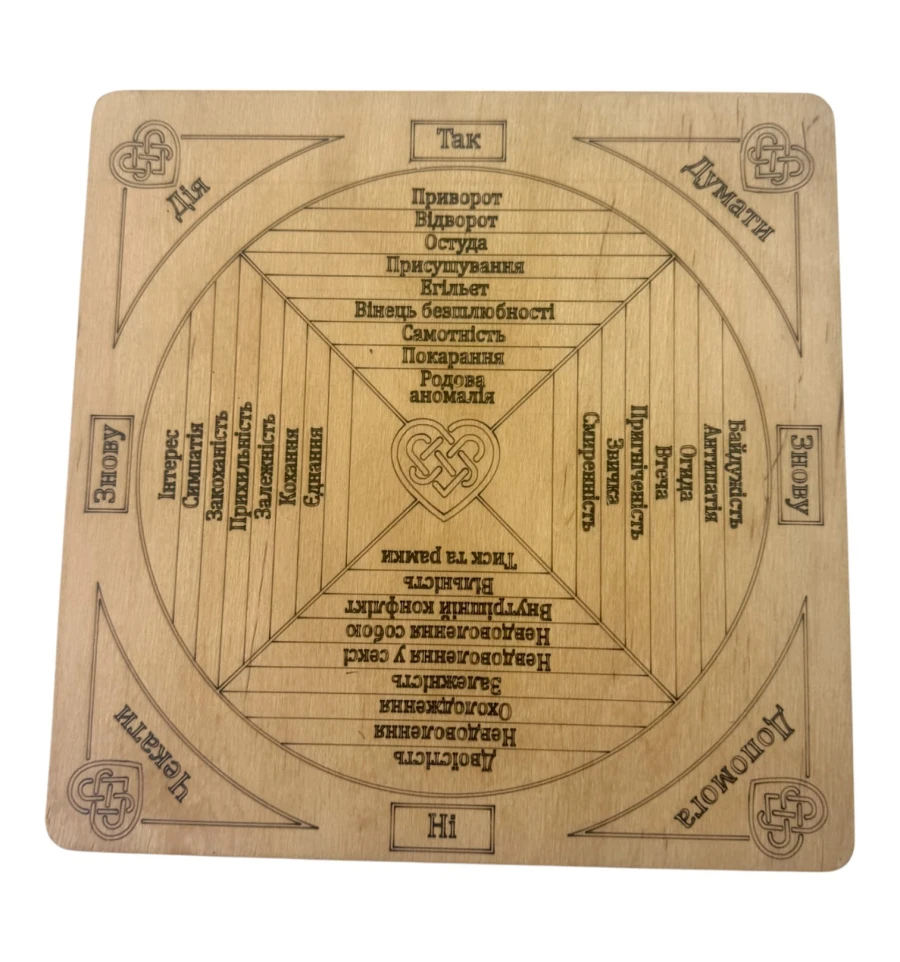 Таблиця для роботи з маятником «Любовної магії», українською мовою світла (26×26×0.8 см)