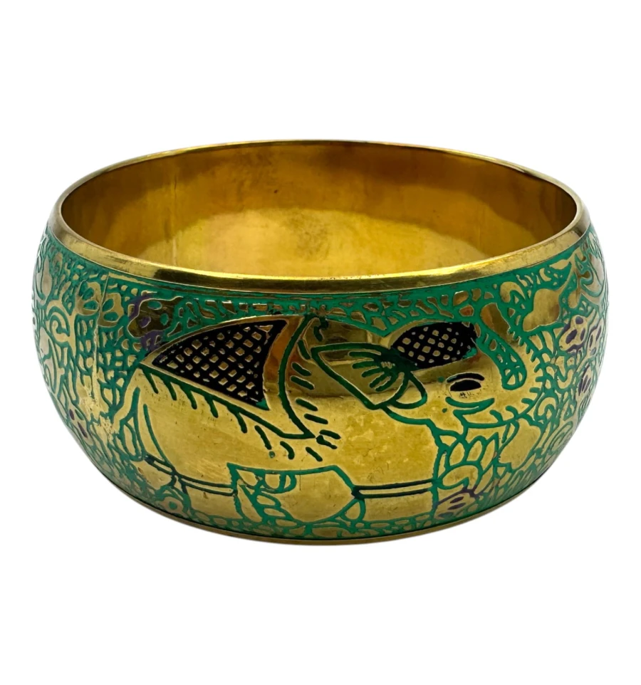 Браслет бронзовий з емаллю та гравіюванням "Слони" зелений (d-7,8; 6,5. h-3 см)