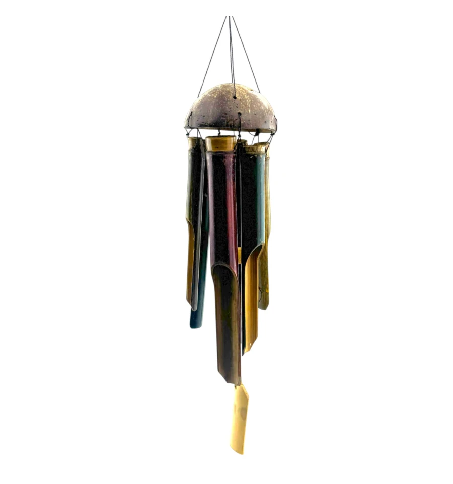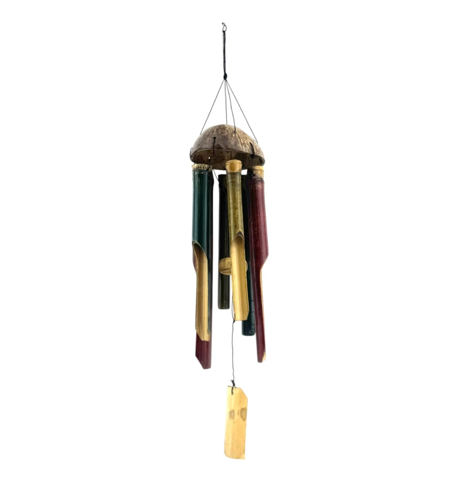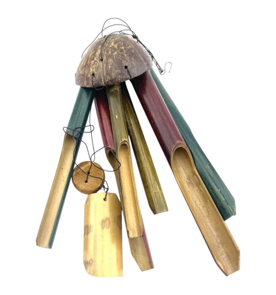 Музика вітру з Індонезії – це не просто декор, а елемент гармонії та затишку. Виготовлені вручну з натурального бамбука та кокосового горіха, вони видають м'який, природний звук, який заспокоює та створює розслаблюючу атмосферу.