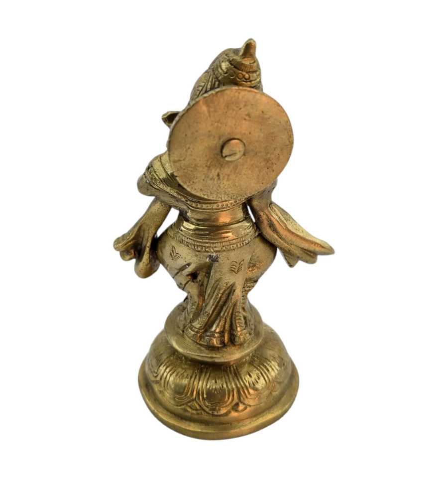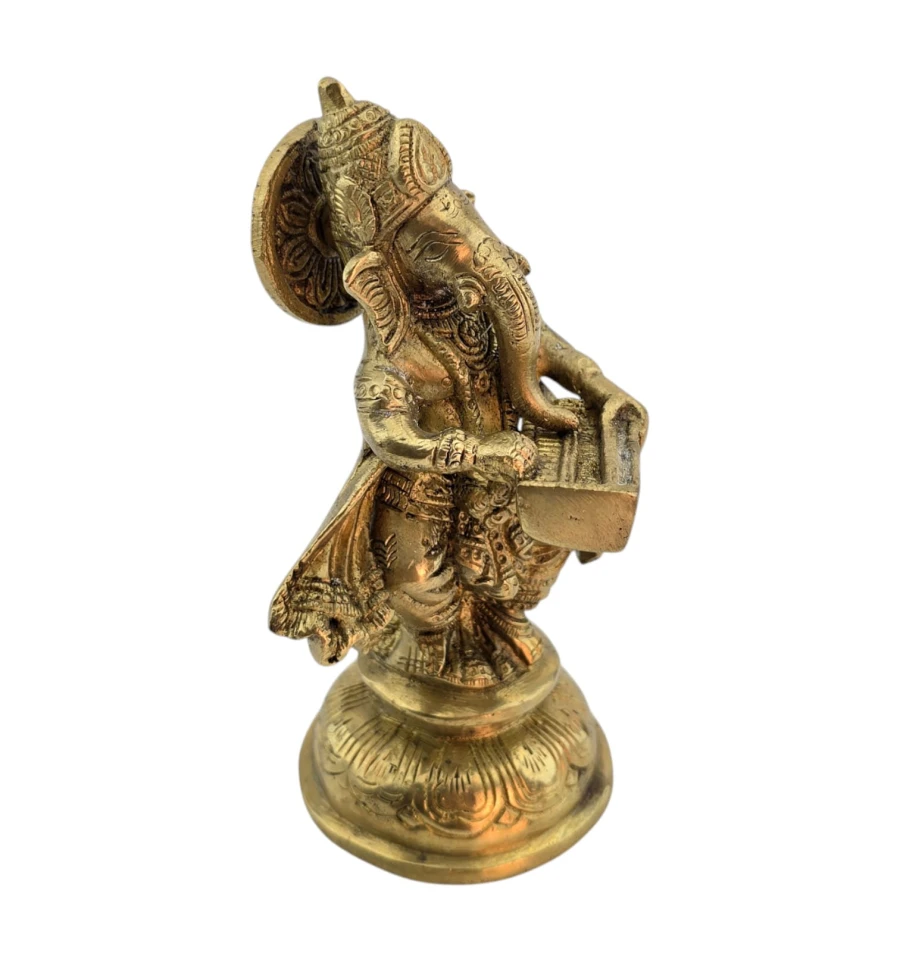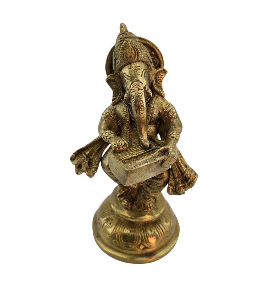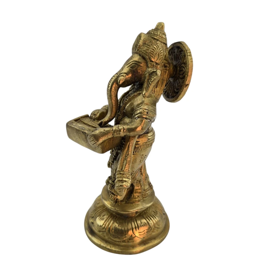 Настільна фігурка бога Ганеші, що грає на гармоніумі. Образ музичного Ганеші символізує натхнення, творчість та вдалий початок справ. Лита бронза з ручним доопрацюванням деталей. Доречна на домашньому вівтарі, в зоні медитації, в офісі або студії, а також змістовний подарунок музикантові, студенту або на відкриття бізнесу.