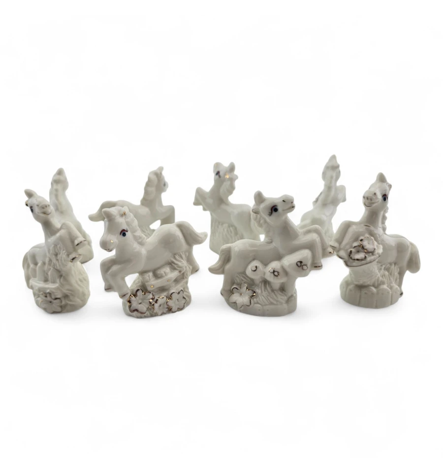 Коні з квітами (набір фарфорових статуеток, 8 шт)
