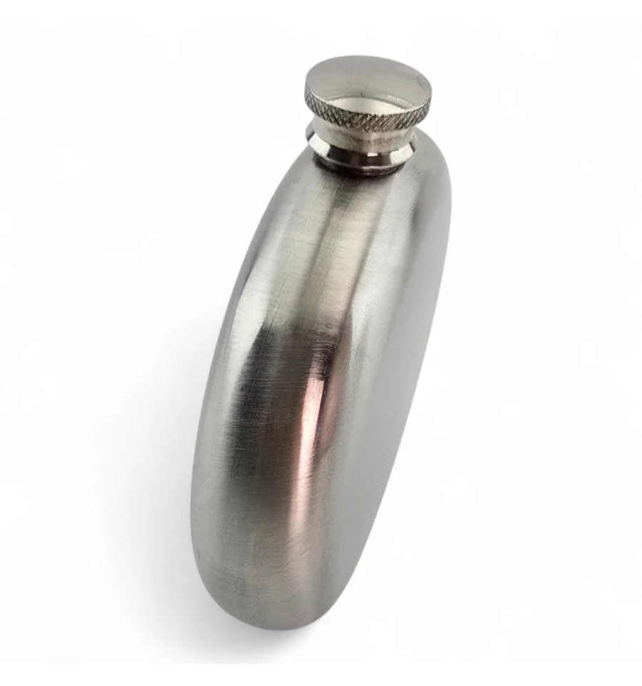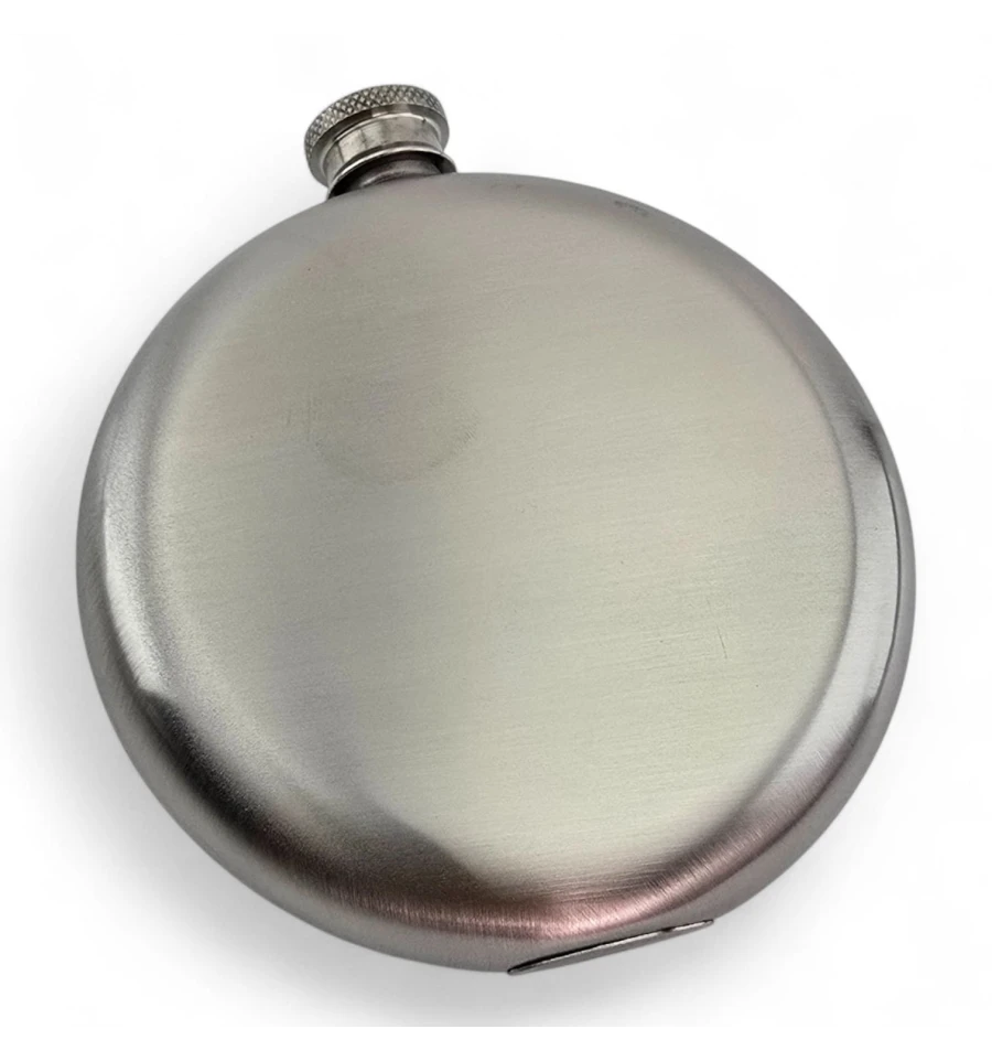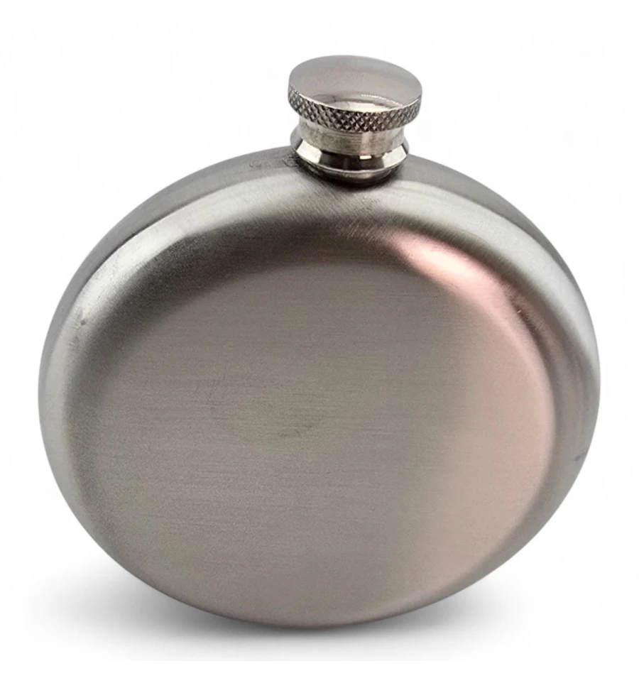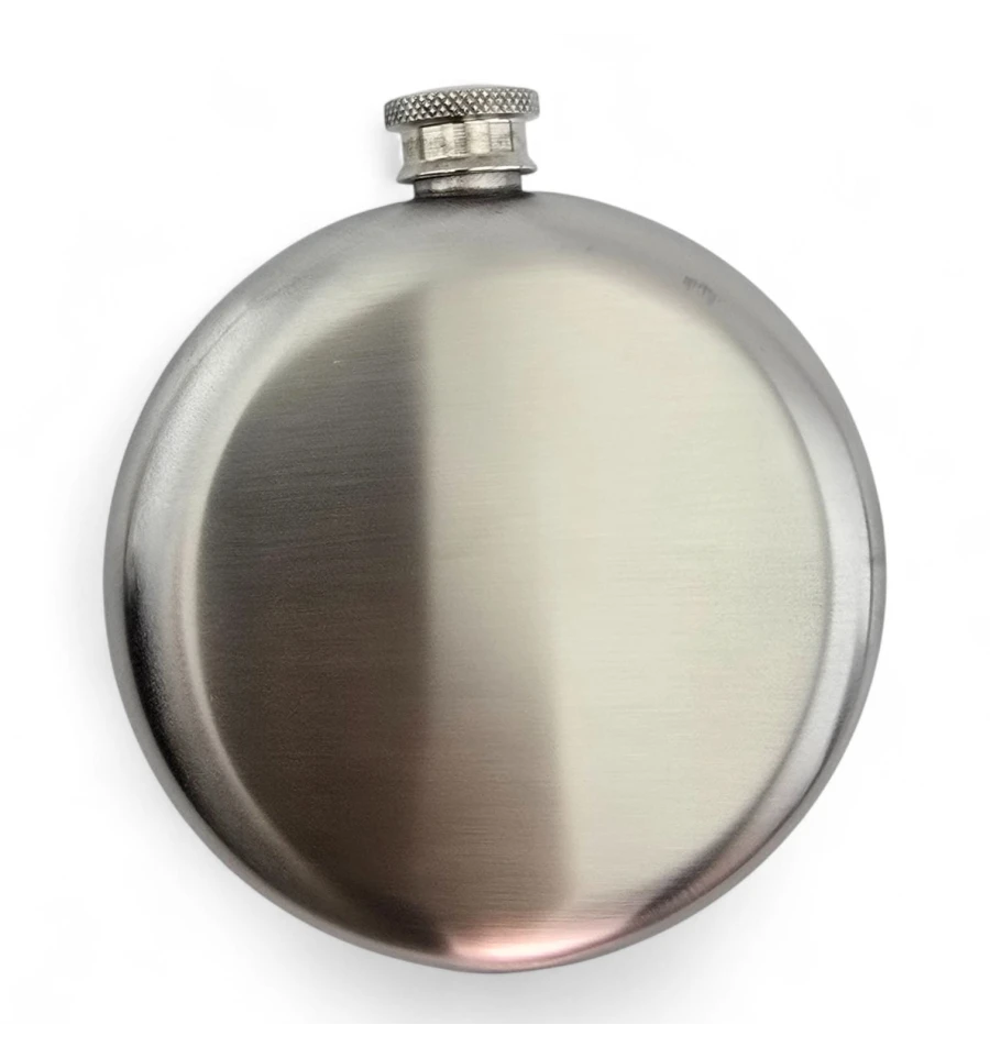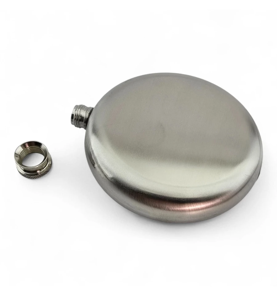 Компактна кругла фляга для напоїв із харчової нержавіючої сталі. Зручно тримати та носити у кишені чи невеликій сумці. Гвинтова кришка надійно фіксується, підходить для поїздок, походів, риболовлі або стильний подарунок.