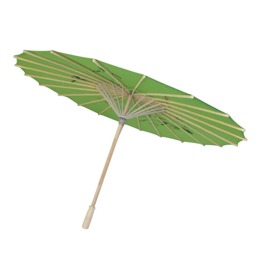 Ця дивовижна парасолька є втіленням вишуканості і традицій. Він виготовлений з легкого та міцного бамбука, який надає йому невагомості та природної краси. Покриття з натурального шовку, зеленого кольору, додає вишуканості та надає цій парасольці унікального зовнішнього вигляду.