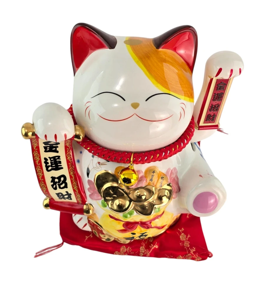 кіт удачі, манекі нэко, 초재 고양이, талісман грошей, кіт на касу, для магазину, для офісу, для дому, фен шуй декор, лапа, що махає, подарунок бізнесу, японський кіт, керамічна статуетка