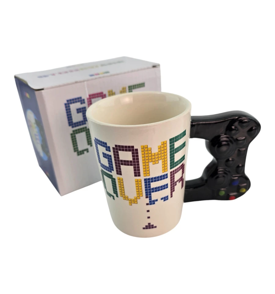 Ефектний кухоль для любителів ігор: білий корпус з піксельним написом GAME OVER та оригінальна ручка у формі геймпада. Зручна та містка - для кави, чаю та будь-яких напоїв. Відмінно виглядає вдома та в офісі, стане класним подарунком геймеру.